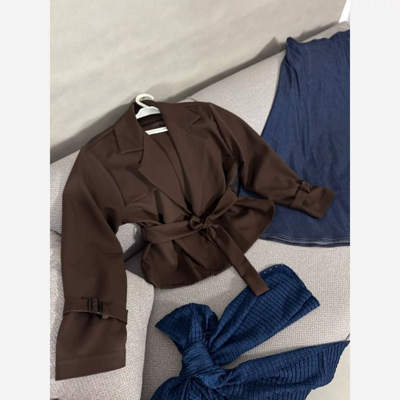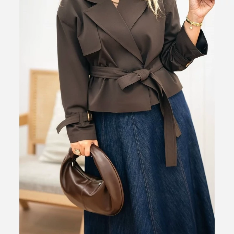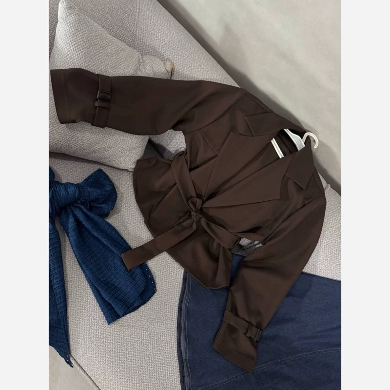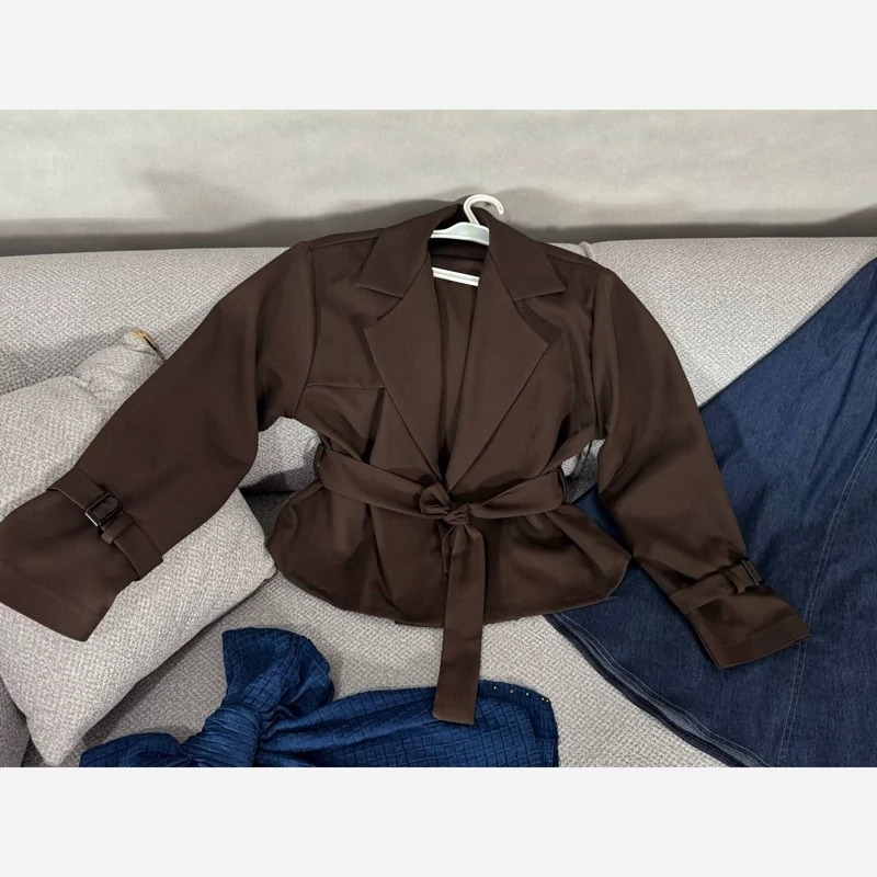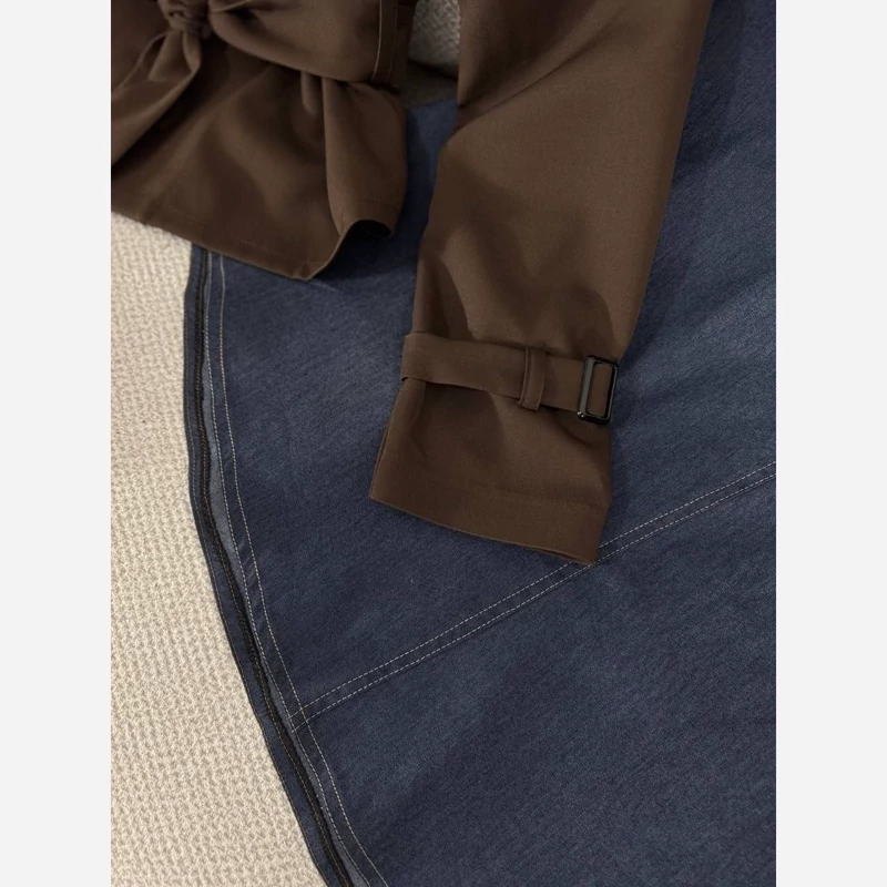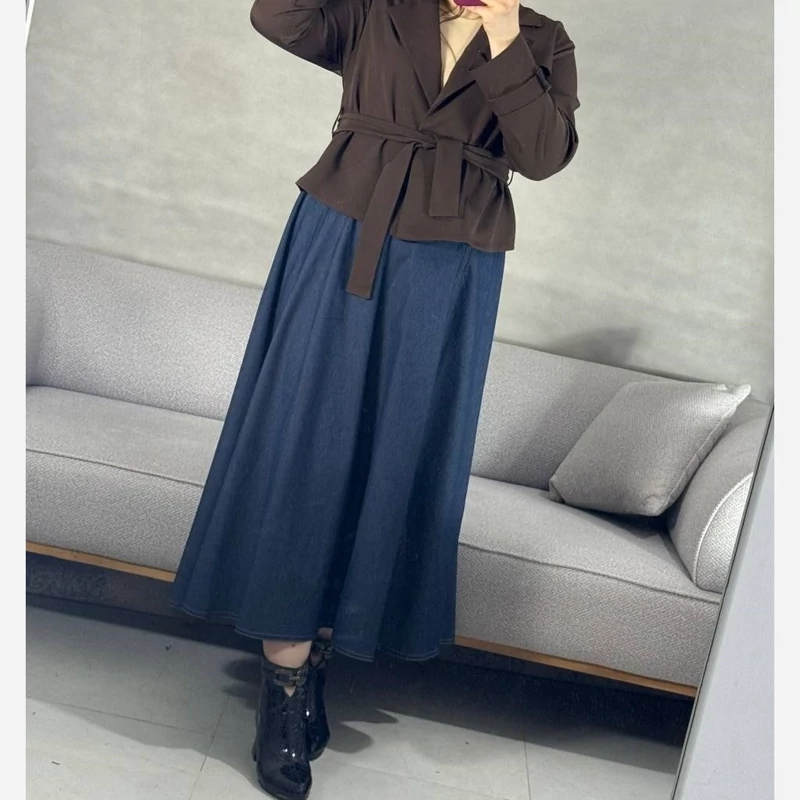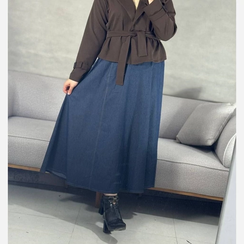 🧵جنس : جنس کت کرپ سوپر باربی درجه یک رنگ قهوهای سوخته ترندی/ دامن جین پنبه درجه یک