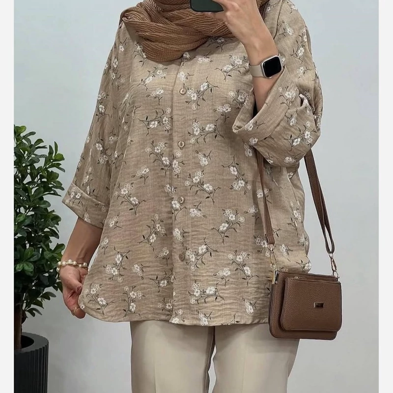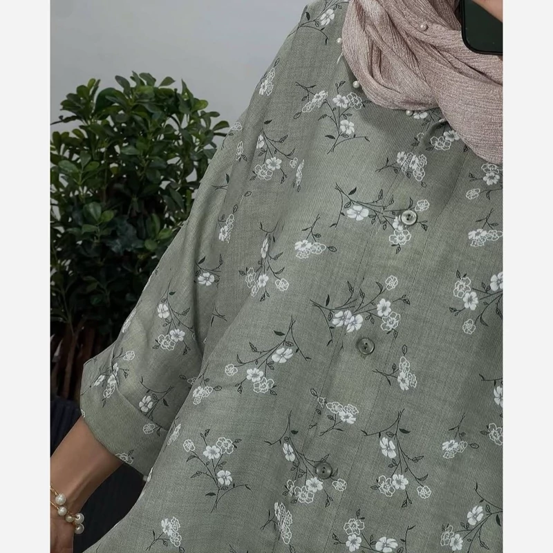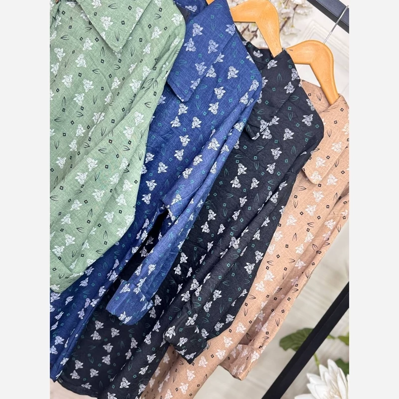 #️⃣شناسه کاربری : #3355 🖋نام : شومیز گلدار ملینا 👚جنس : لنین گچی 🌈رنگ بندی : مشکی , سورمعی , نسکافعی , سبز , 📏سایزها : فریسایز38تا46 , 📝توضیحات : قد حدود 75 ارسال فوری