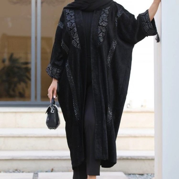 🌿پانچ عبایی جلوباز با خرجکار هندی و نوار پولکی جذاب🥰👌🍂