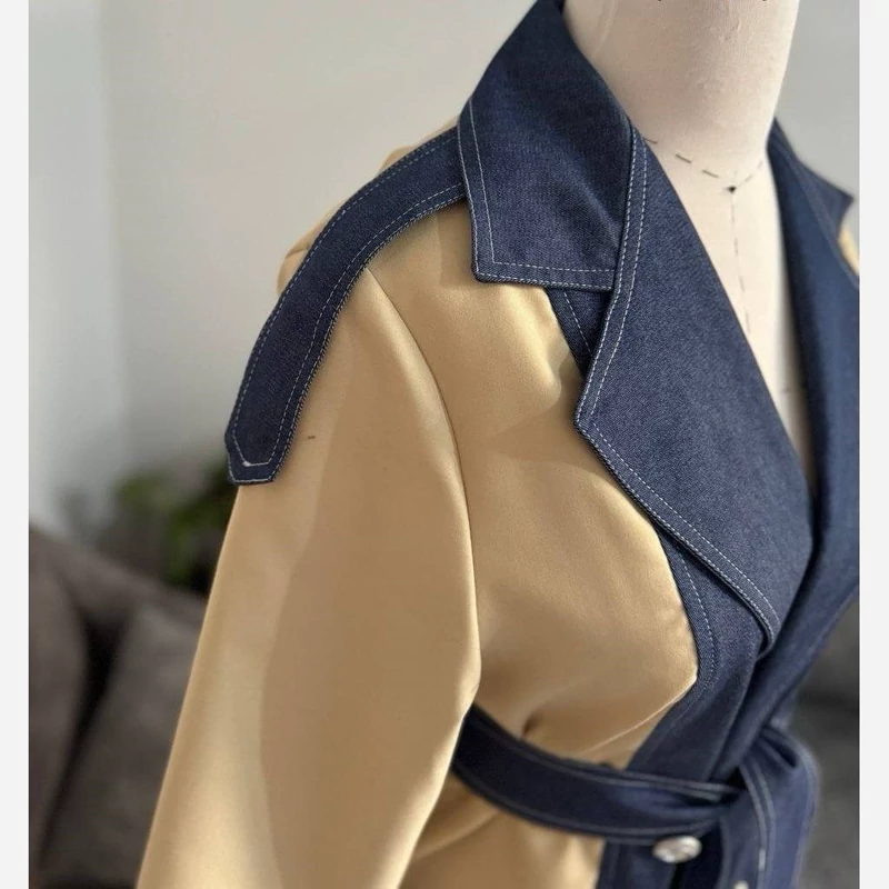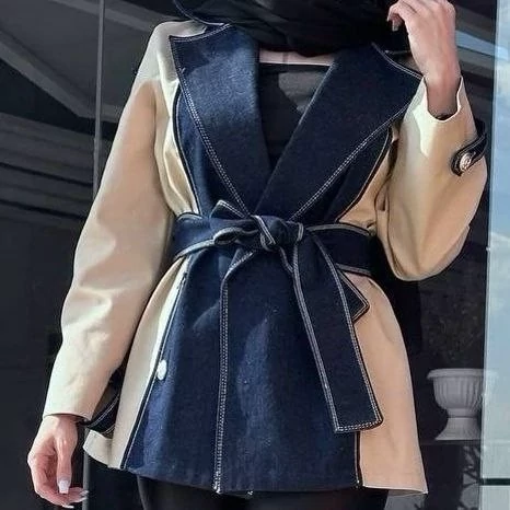 🆔 شناسه : #308 👚نام : کت مزونی ترکیبی تینا 💖قد کلی حدود 80 💖قد آستین 58 💖دورسینه حدود 110 💖با کمر بند 💖دکمه ها نمایشی 💖ترکیب جین و کرم نخودی 🧵جنس : جین ضخیم وارداتی درجه یک، ضخامت عالی اصلا کاغذی نیست 🖌 رنگ بندی : تک رنگ ژرنال ⚜️ سایز ها : فری سایز 38 تا 46 ارسال 5 روزه
