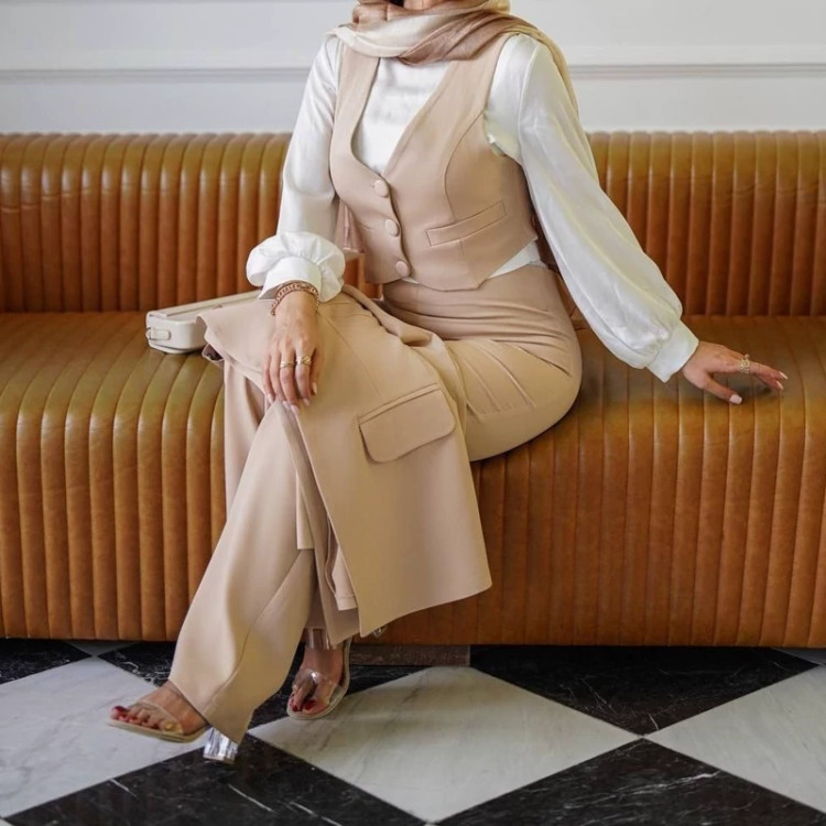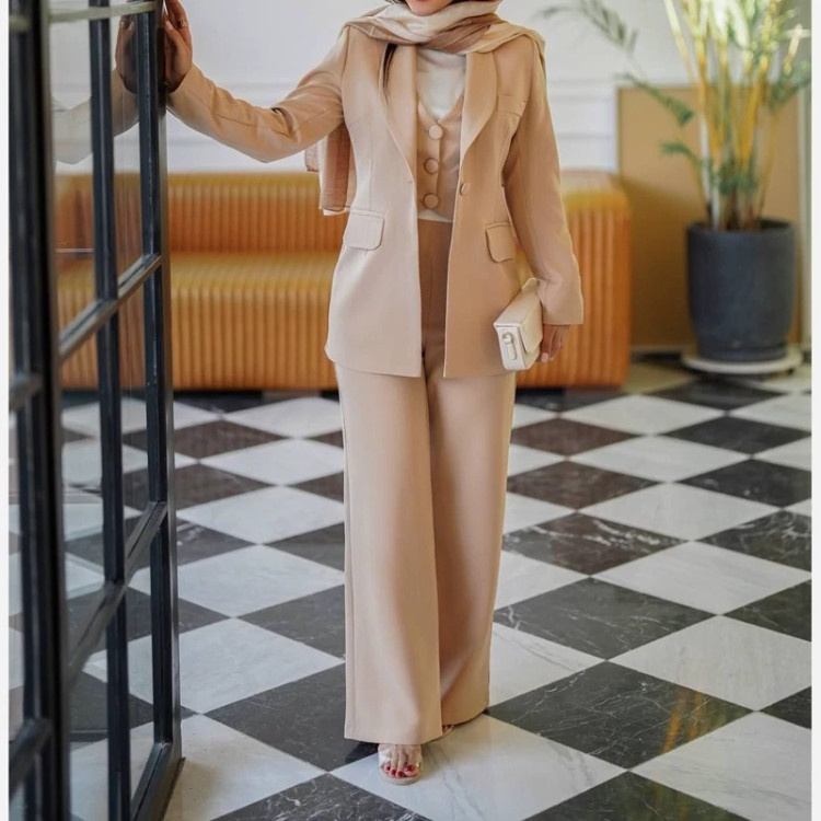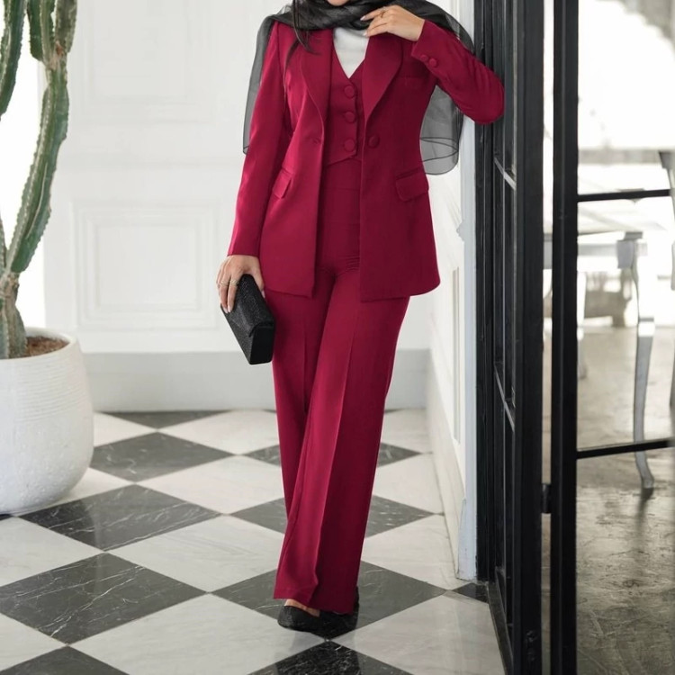 🧵جنس : ست سه تیکه کت و شلوار و جلیقه