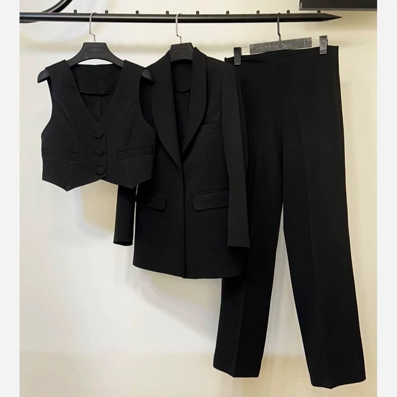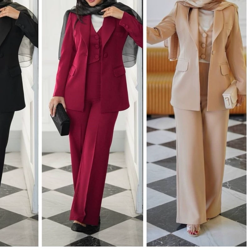 🧵جنس : ست سه تیکه کت و شلوار و جلیقه
