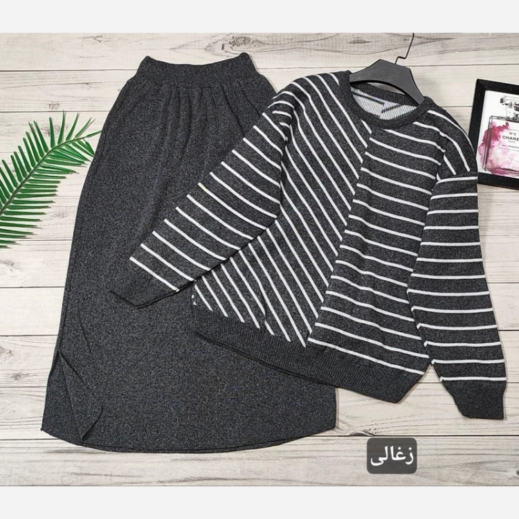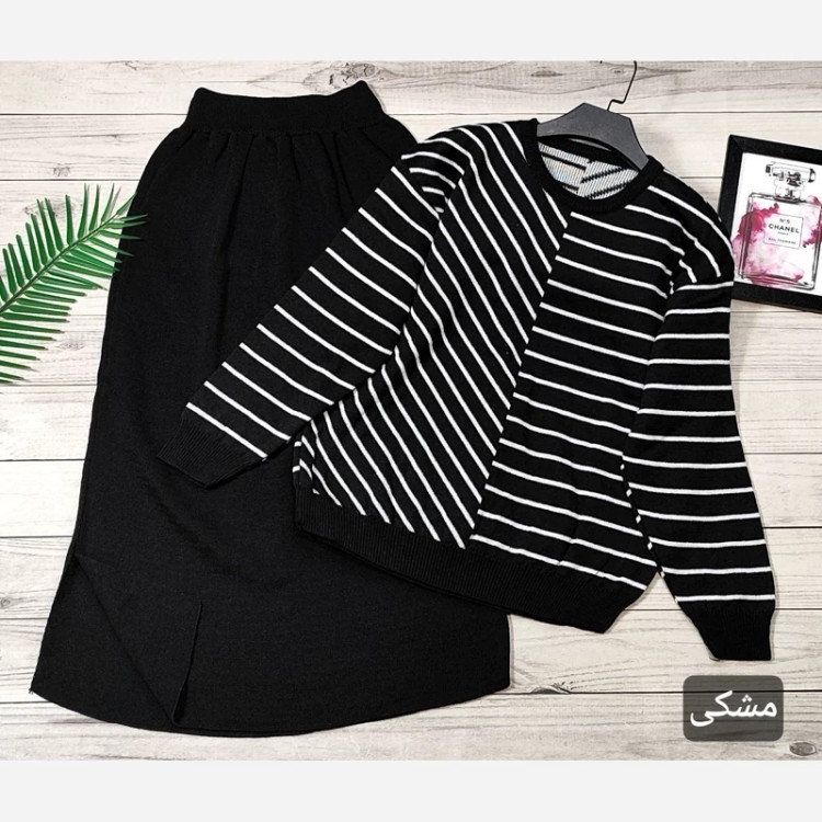 🌟 ست بلوز دامن بافت راه راه 🧶