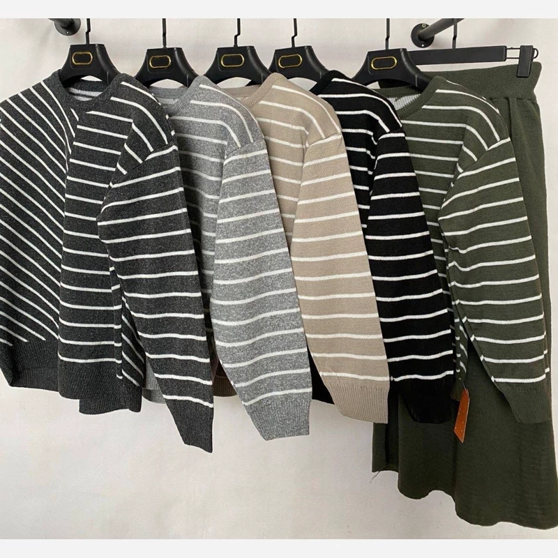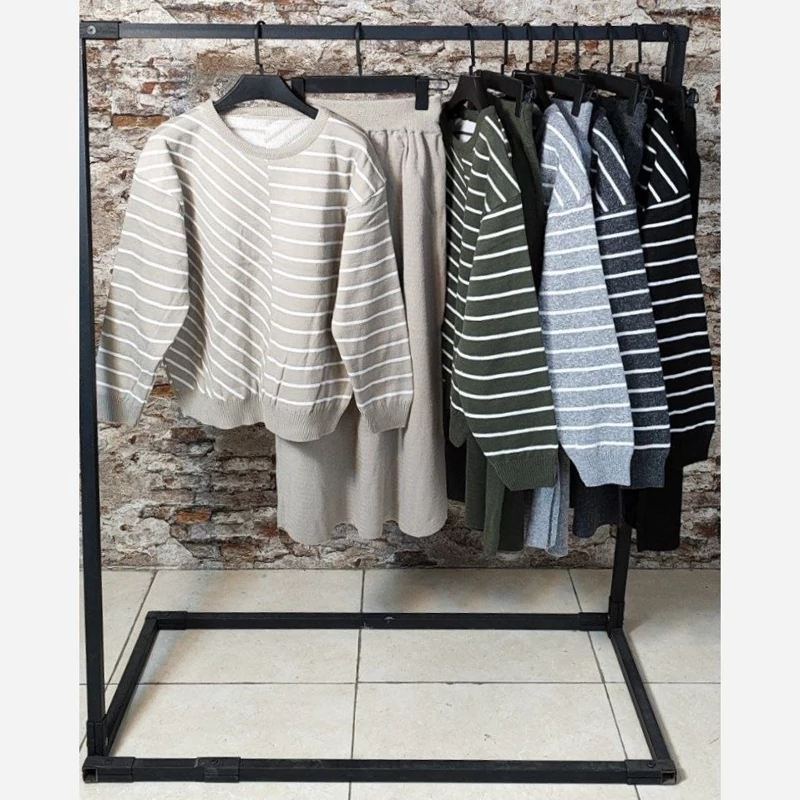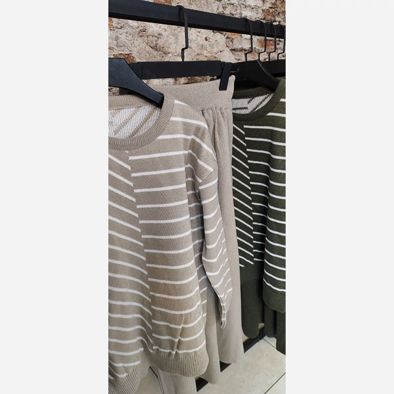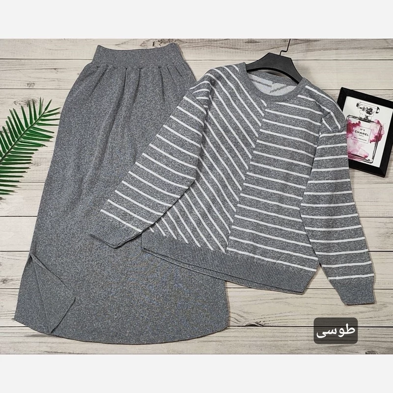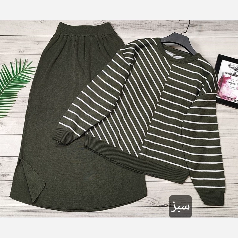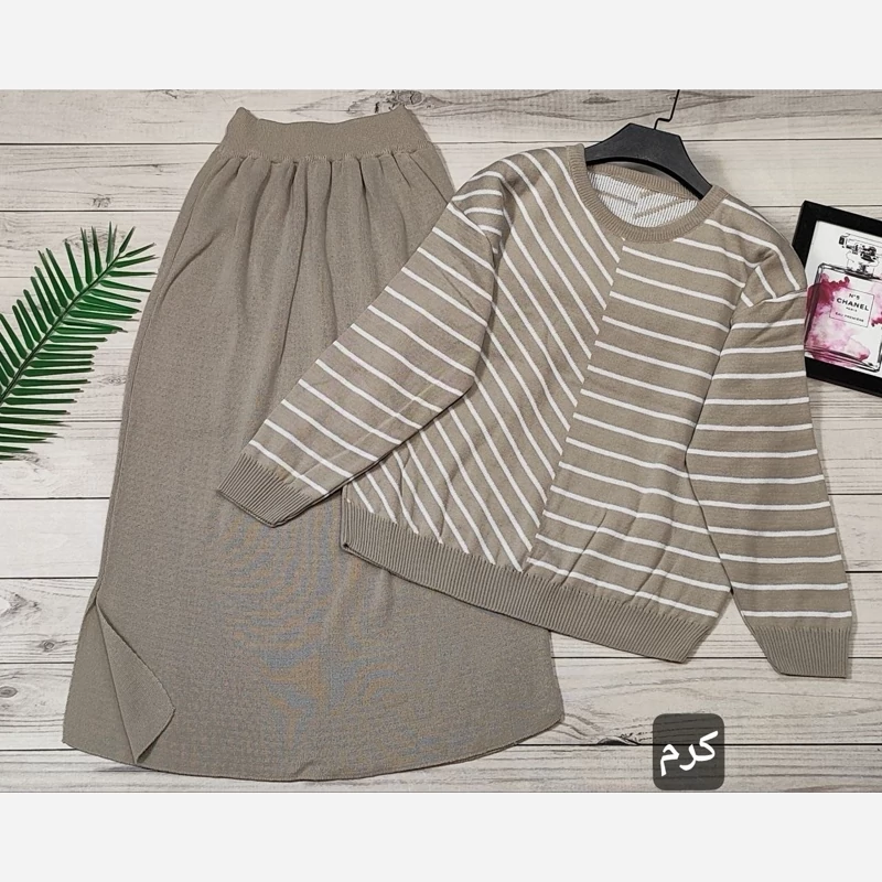 🌟 ست بلوز دامن بافت راه راه 🧶