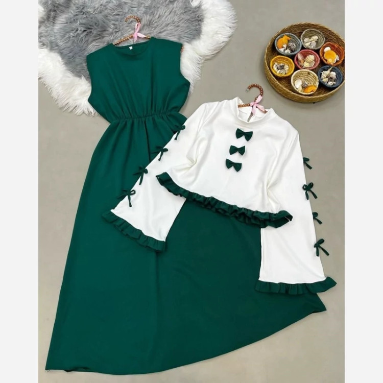 سایز ها : فری سایز تا 48💖 ⚡️قد شومیز50 ⚡️قد آستین 60 ⚡️دورسینه110 ⚡️قد سارافون حدودا130 ⚡️ارسال فوری🔹