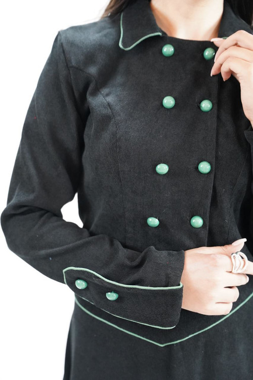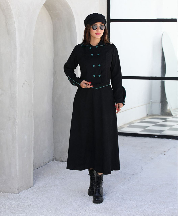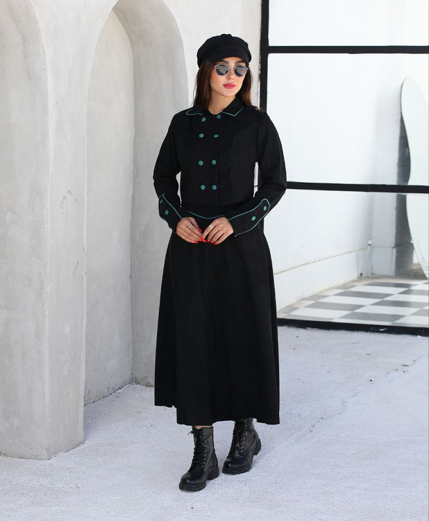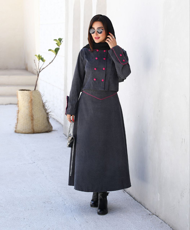 دوتیکه کت و دامن. دکمه های جلو کاربردی. دامن از قسمت پشت کمر کش کار شده. قددامن:۸۵. قد کت:۴۵. قدآستین:۶۱. قسمت رنگی مغزی دوزی شده