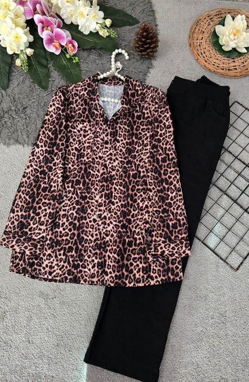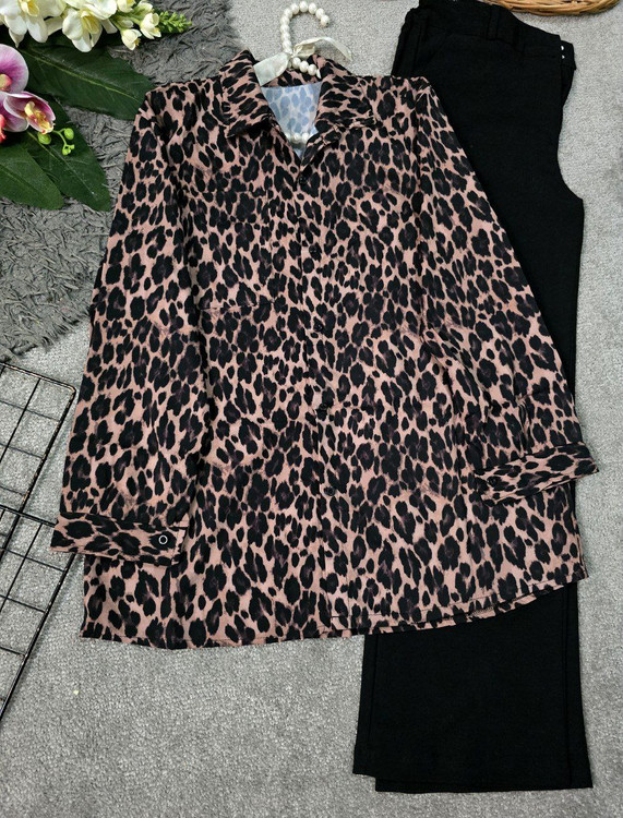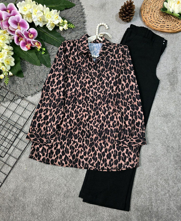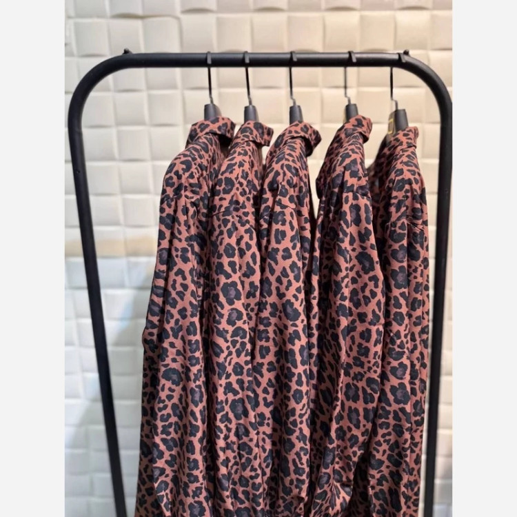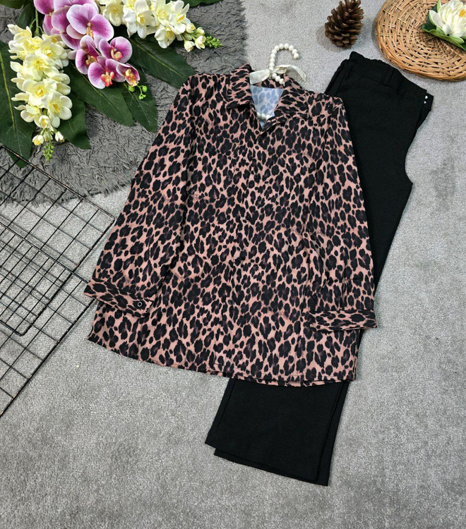 🆔 شناسه : #206 👚نام : شومیز پلنگی 😍 👗خیلی خیلی ترند🔥 دوخت تمیز و حرفه ای 🔥 به شدت پر فروش 🔥 قد کار 75 عرض سینه 54 (دور سینه ۱۰۵) فری سایز تا 44 و 46 🧵جنس : سوپر سافت (تترون درجه یک ) 🖌 رنگ بندی : پلنگی - ⚜️ سایز ها : فری سایز -