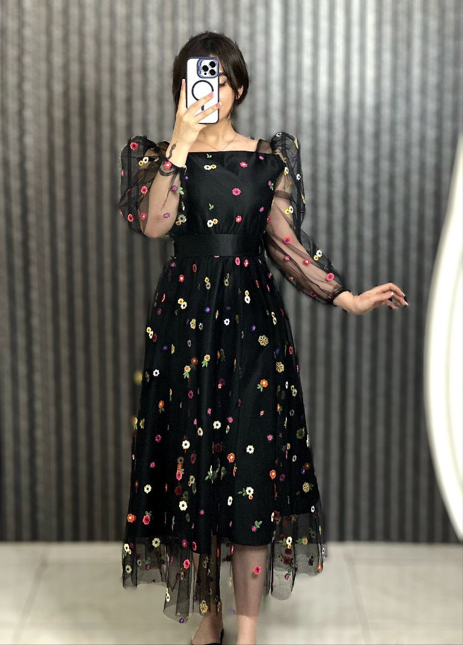 پیراهن بابونه تور گلدوزی با استر ساتن سایز 36 تا 46