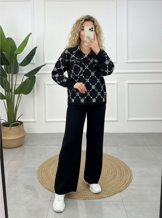 ست کت وشلوار بافت جلو دکمه سایز 38 تا 48