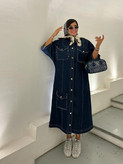 مانتو جین نیلی گرم بالا سایز 38 تا 48