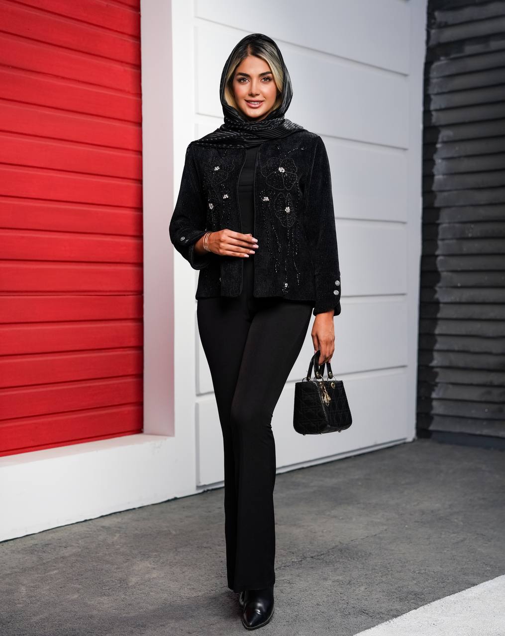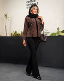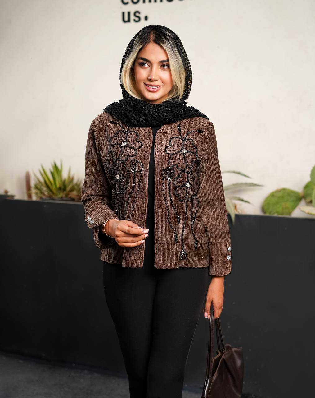 کت مجلسی سنگدوزی زمستانه لمزور بیسکوییتی شاین دار سایز 36 تا 46