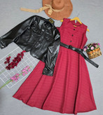 مدل سارافون : تمام کلوش،سارافون دارای کمربند چرمی جهت تنظیم سایز کم دکمه شومیزی پشت سارافون کار شده
