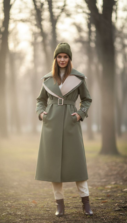 بارونی دو یقه ترکیبی کتان کجراه سایز 38 تا 46