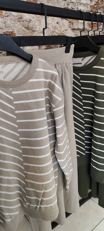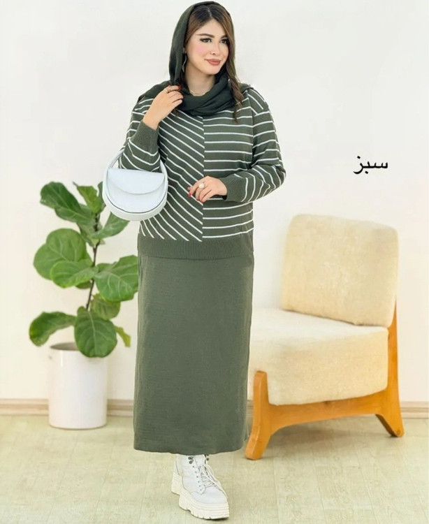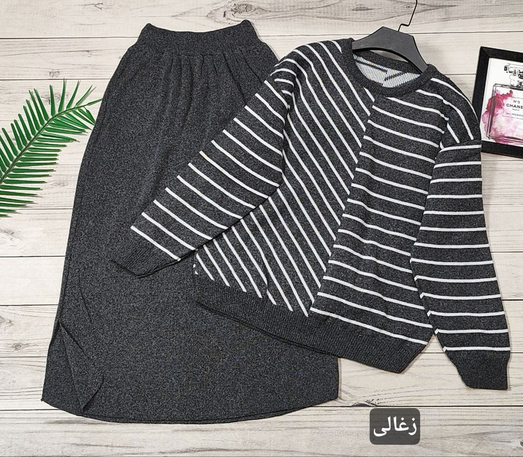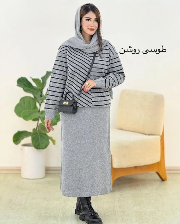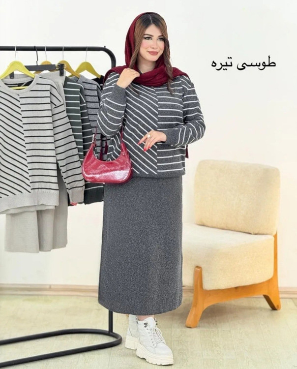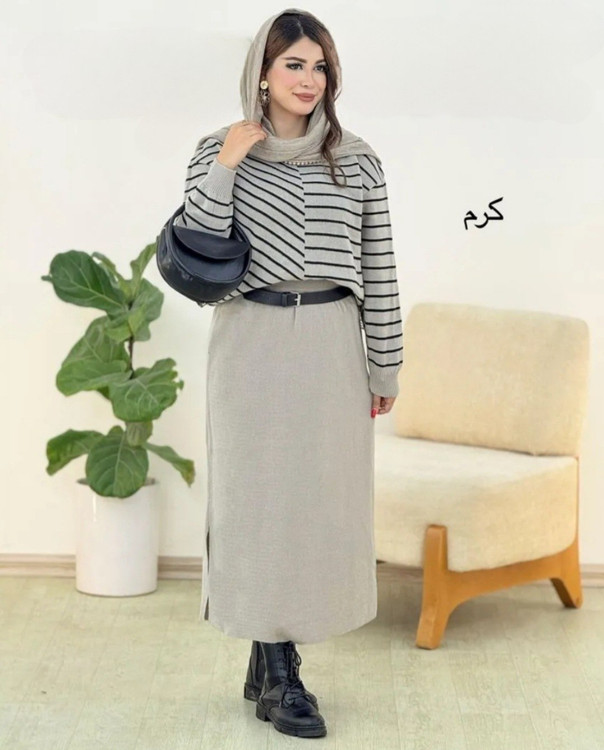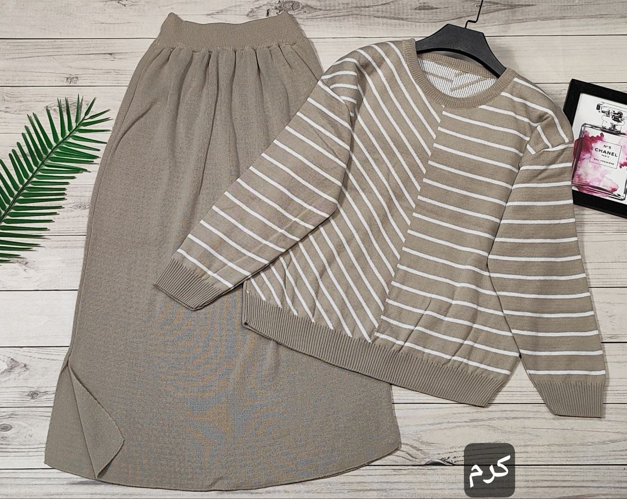 🌟 ست بلوز دامن بافت راه راه 🧶