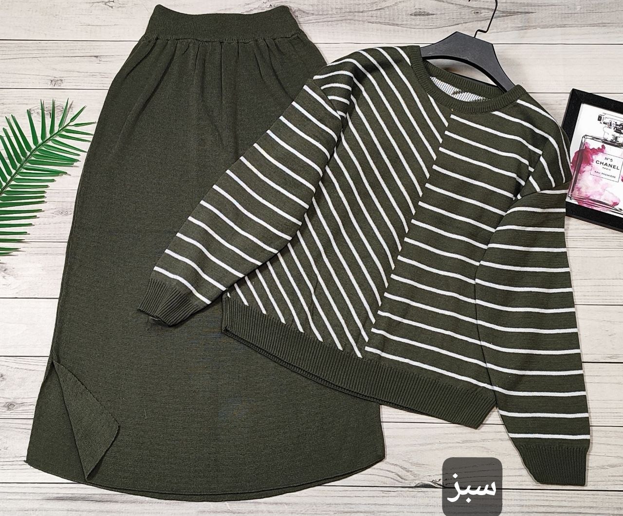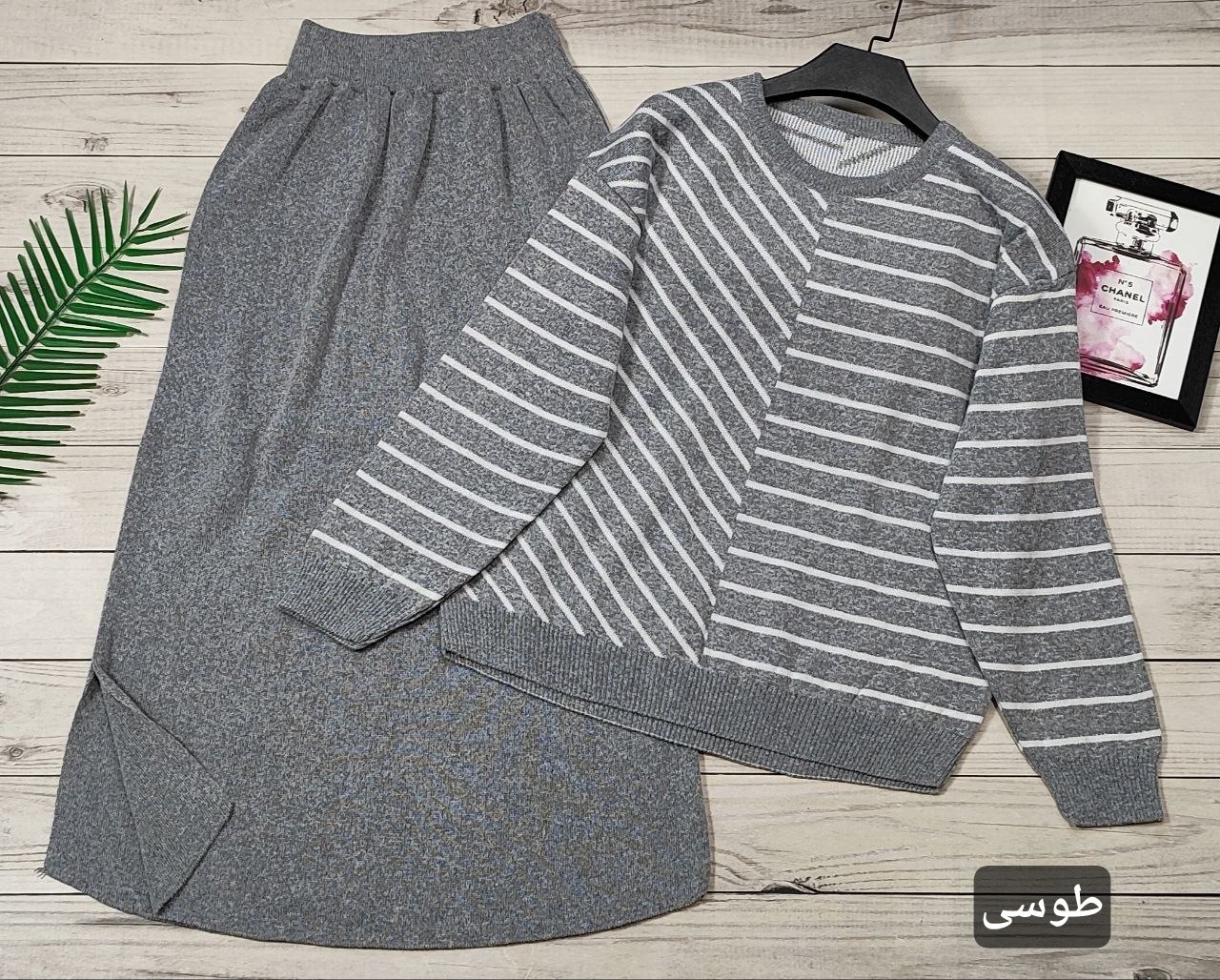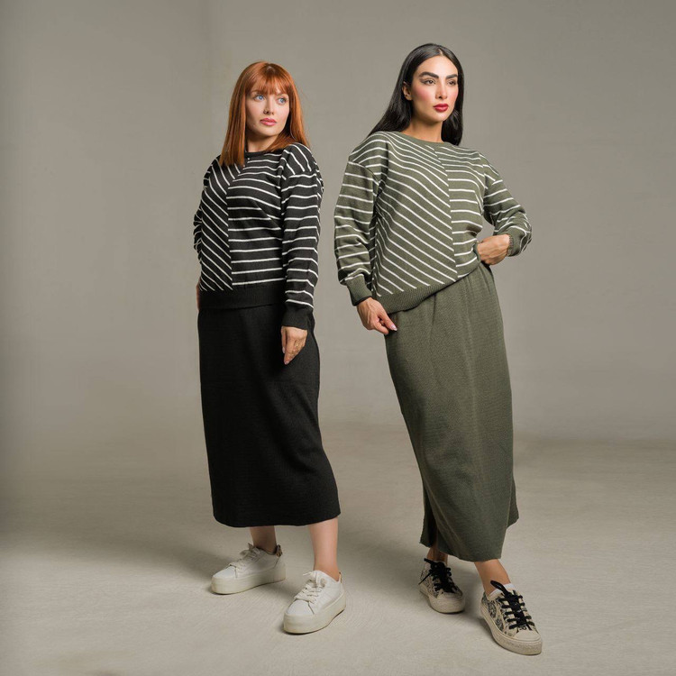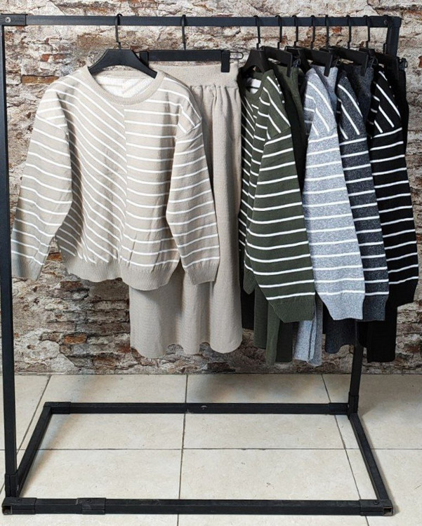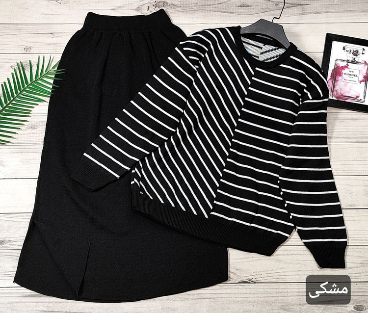 🌟 ست بلوز دامن بافت راه راه 🧶