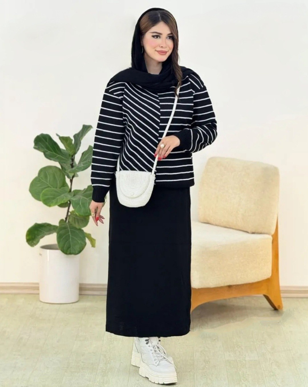 مدل شهرو ست بلوز دامن بافت راه راه سایز 36 تا 46