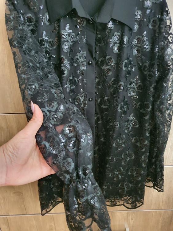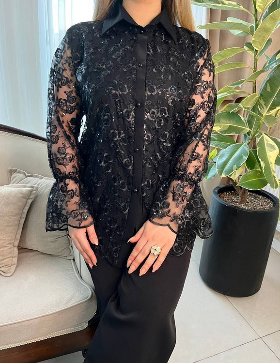 شومیز غنچه کرپ الیزه و گیپور وارداتی پولک دوزی سایز ۴۲تا ۴۸