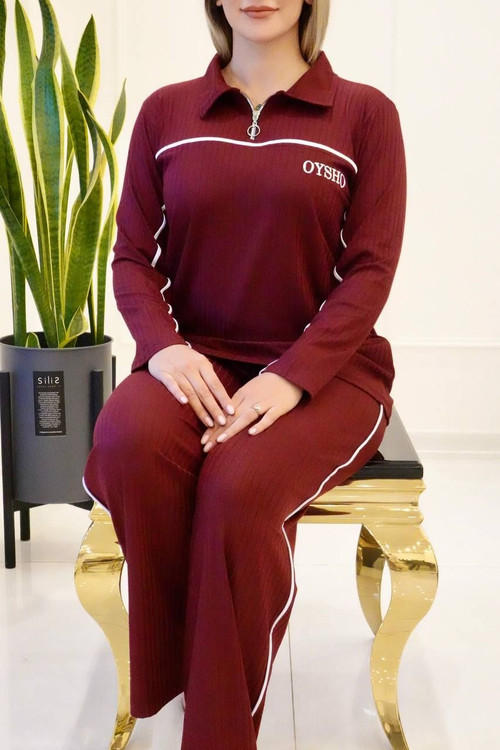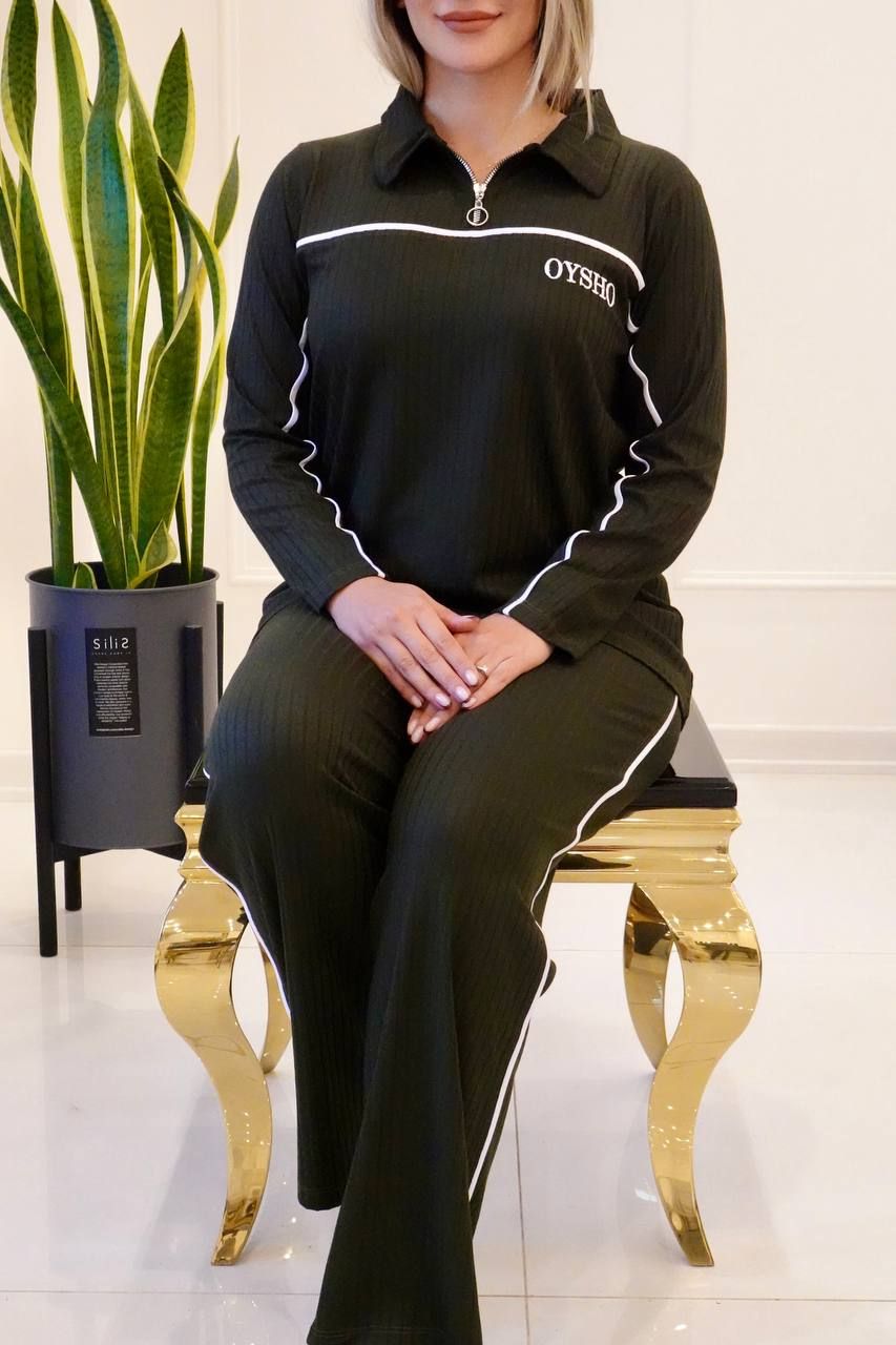 ست بلوز و شلوار نیم زیپ oysho آکاردئونی با لطافت و کشسانی بالا سایز ۳۸ تا ۴۸