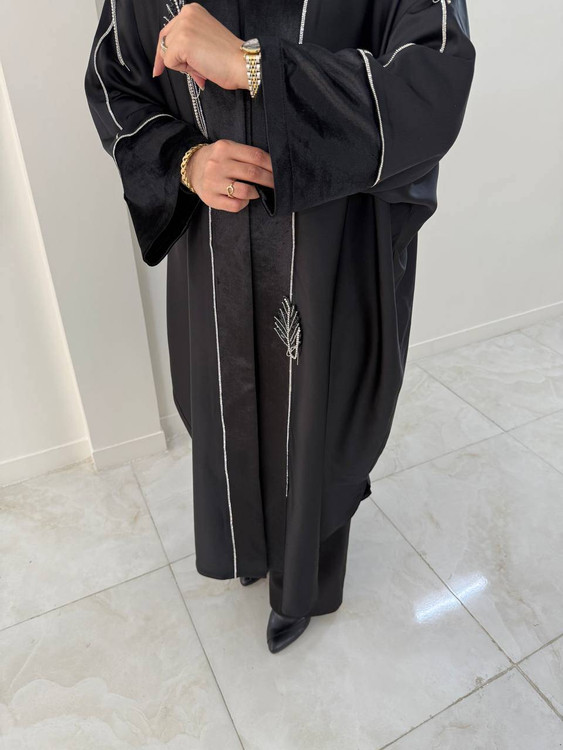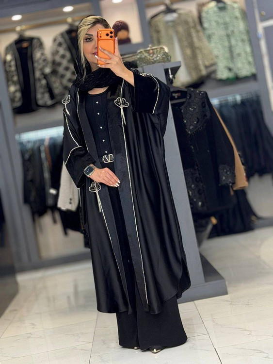 ❤عبایی ساتن زارا یقه هفت نگین نواری سواراسکی با خرجکار جواهر دوزی دستدوز