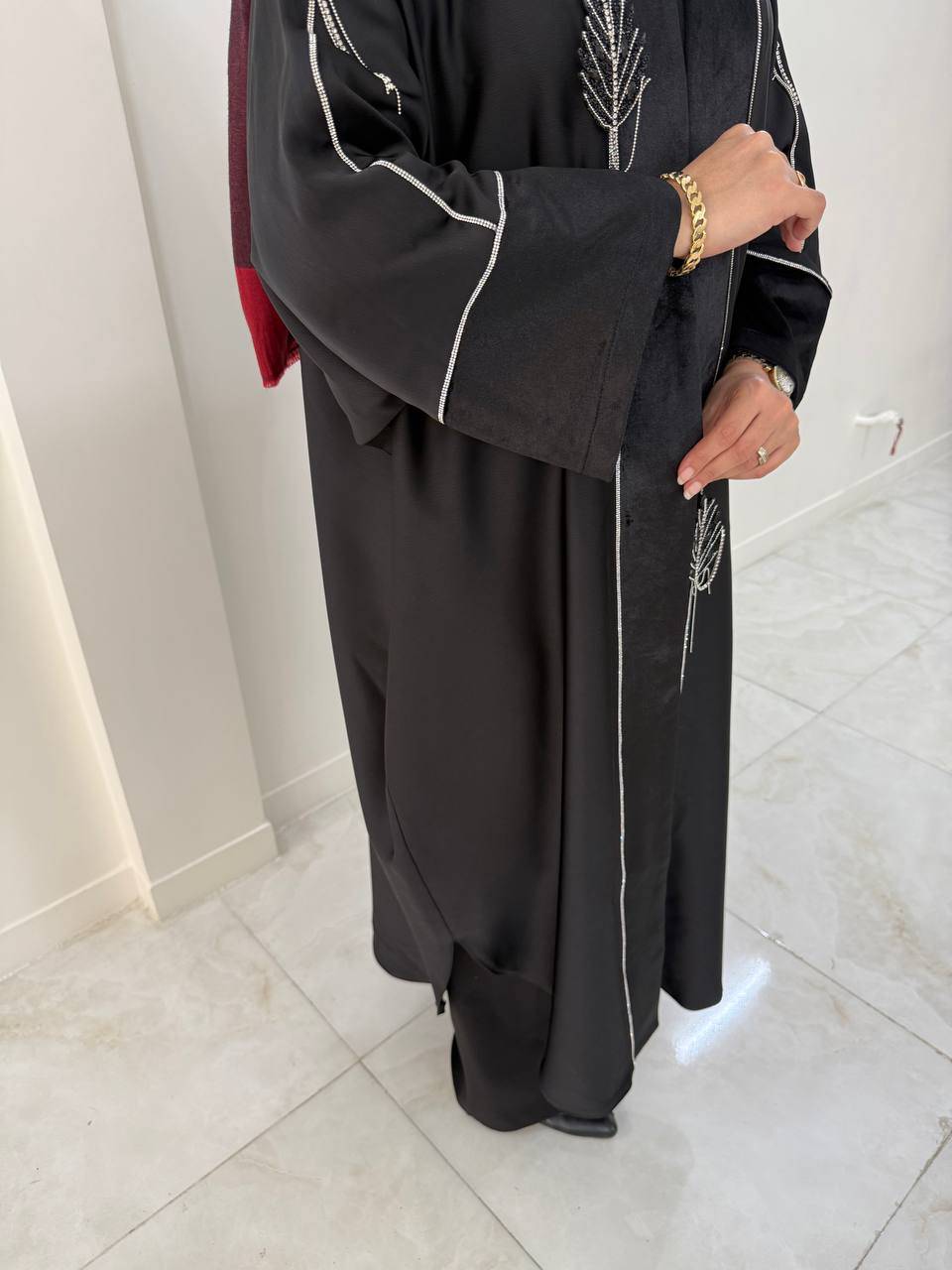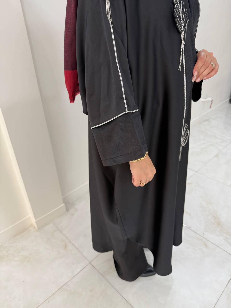 ❤عبایی ساتن زارا یقه هفت نگین نواری سواراسکی با خرجکار جواهر دوزی دستدوز