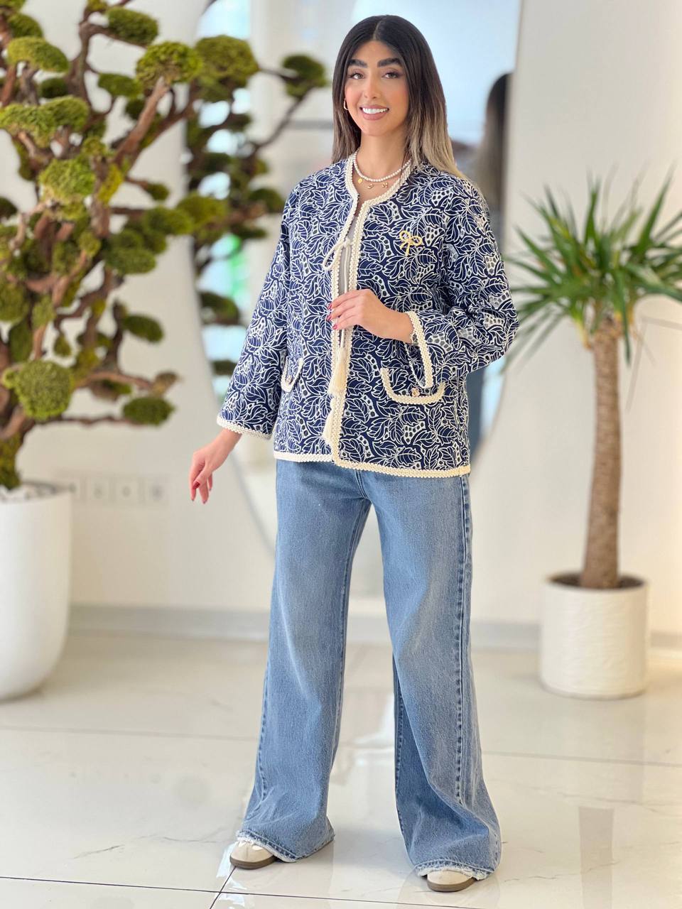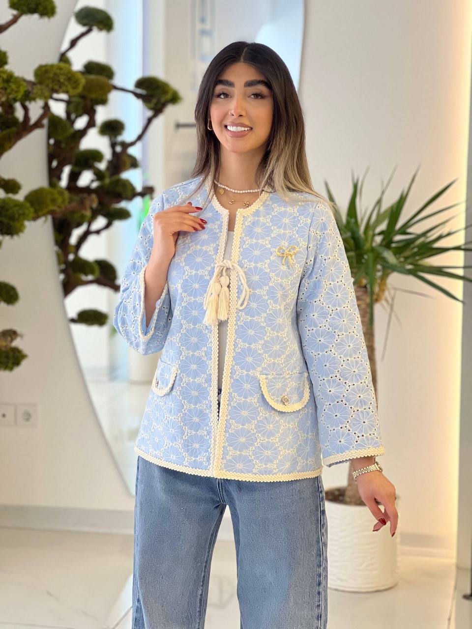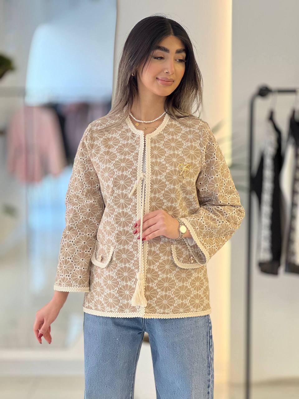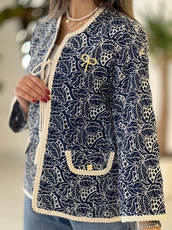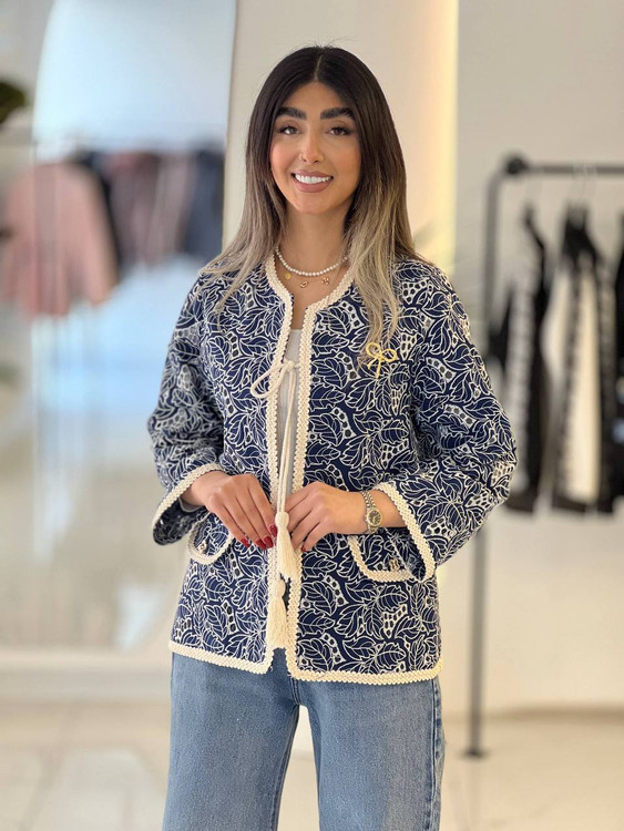 کت لینن خامه دوزی منگوله دار عیدانه سایز ۳۶ تا ۴۴