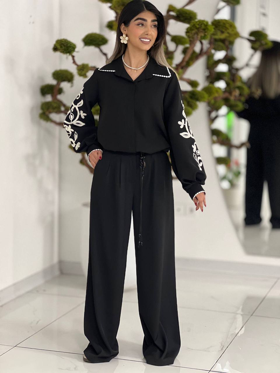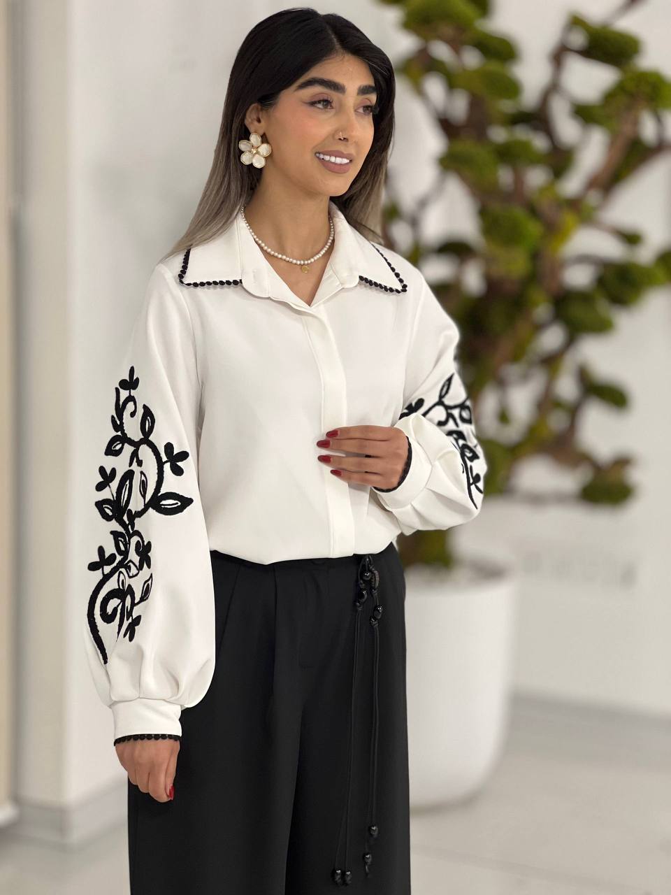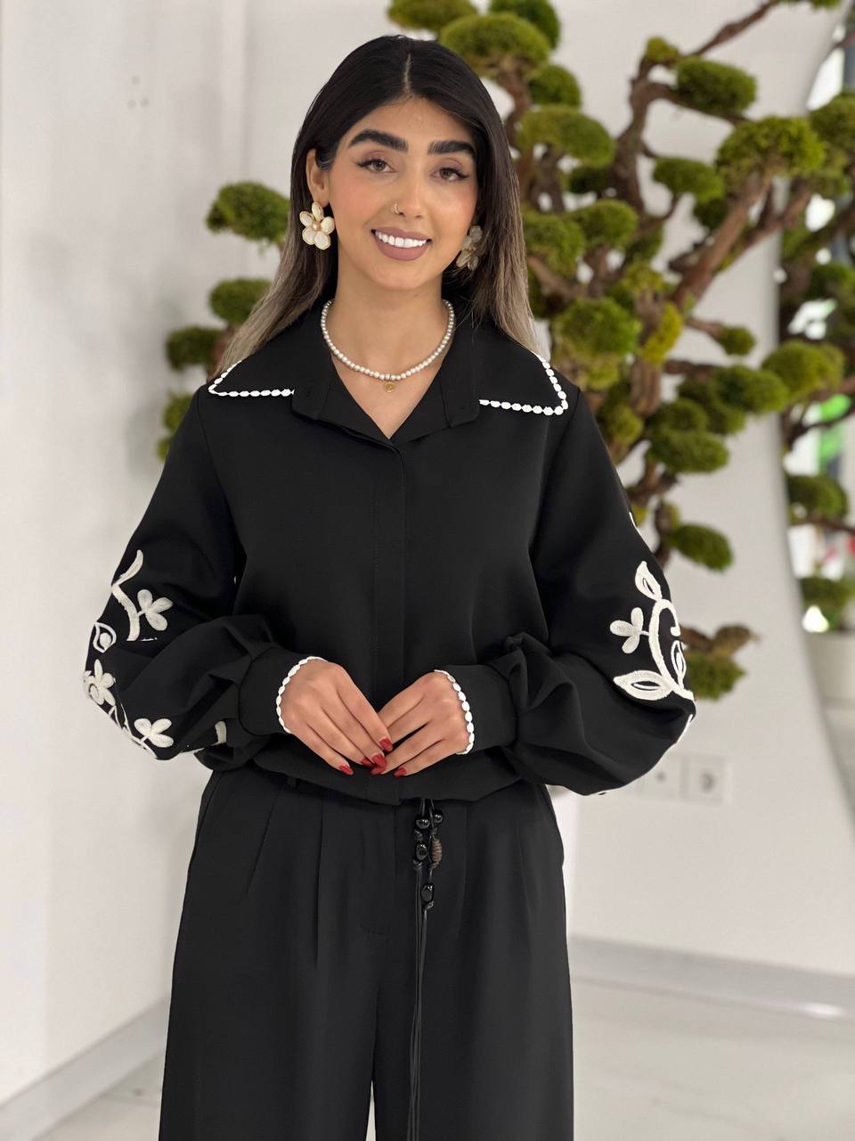 🌸شومیز ملودی پارچه مازراتی ✅ 🌈۲ رنگ ⚪️⚫️ ✂️٢ سايز سايز ١ مناسب براي ٣٦ تا ٤٠ سايز ٢ مناسب براي ٤٢ تا ٤٦ ✅کد ۱۹۸۴ 📐قد کار ۶۵
