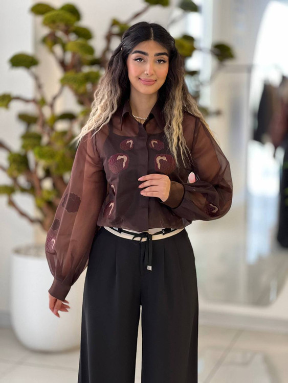 🌸شومیز ارگانزا گلدوزی مدل گرتا