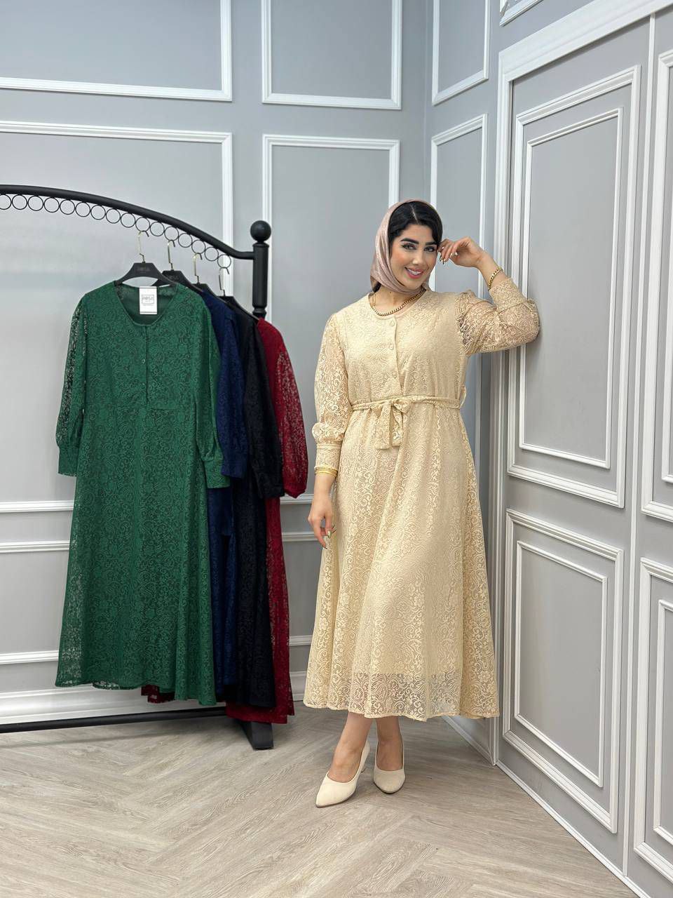 💎 نام: پیراهن گیپور نیلگون