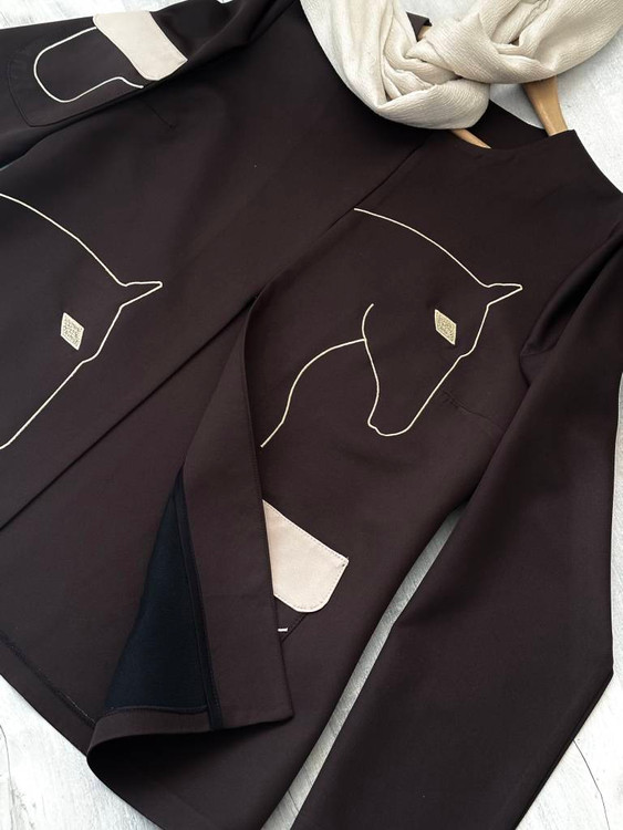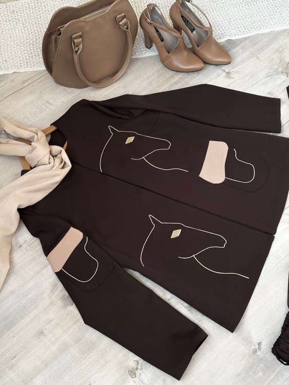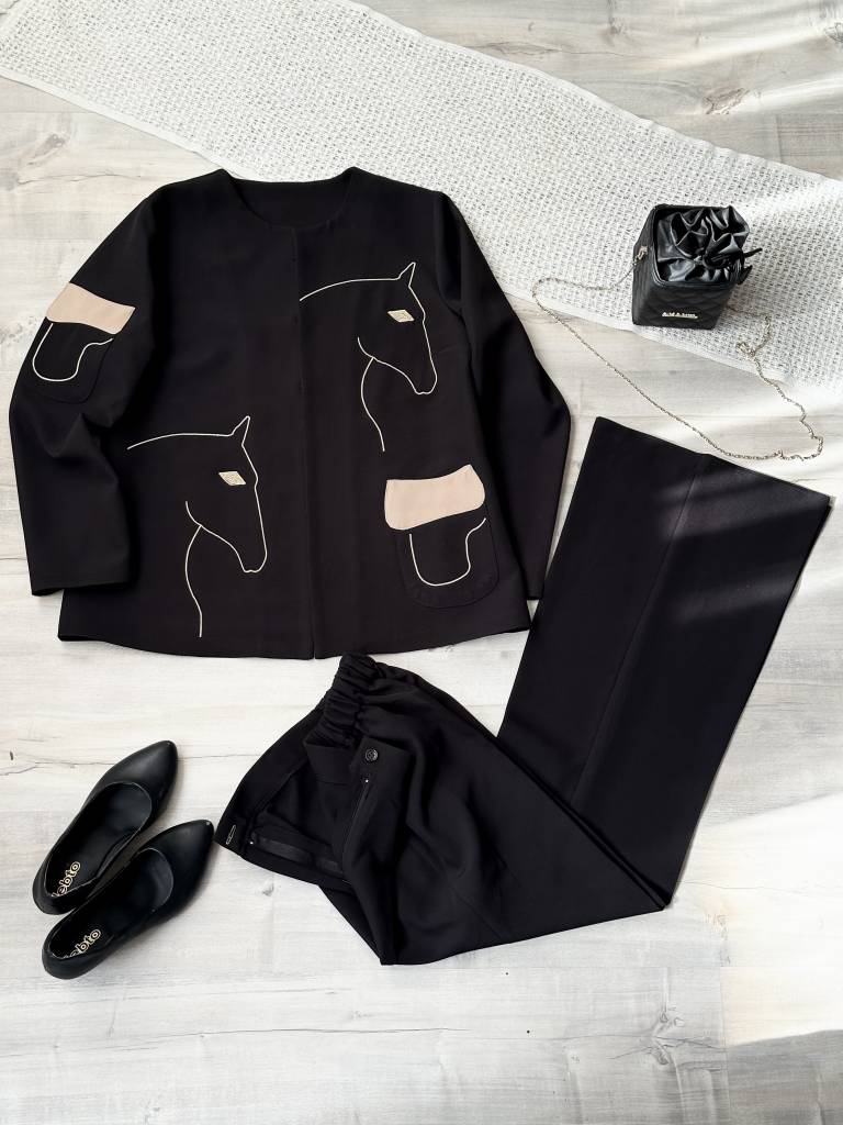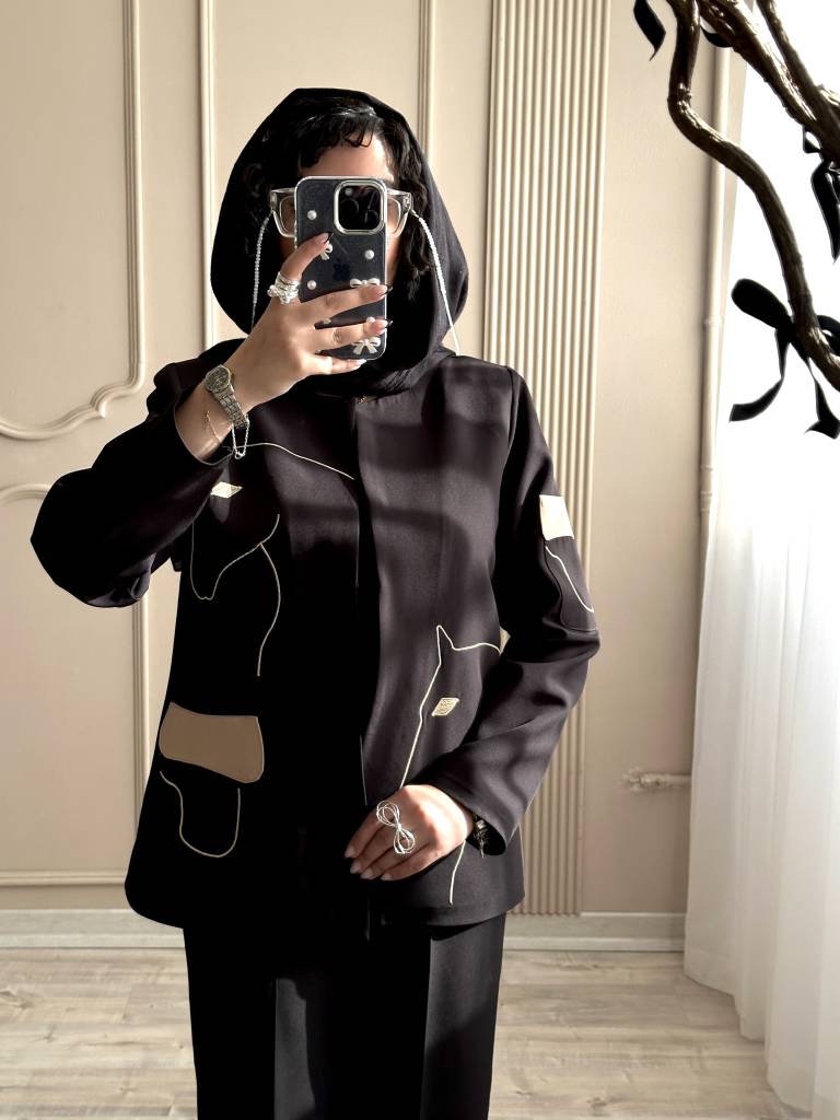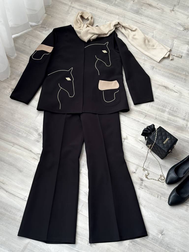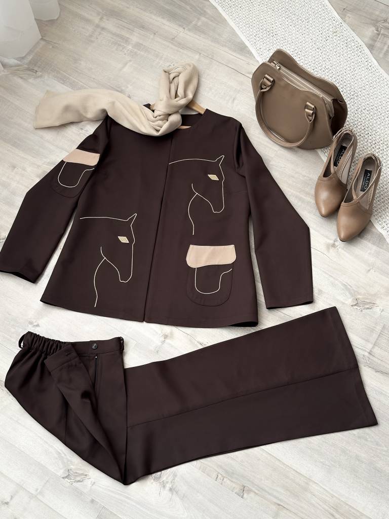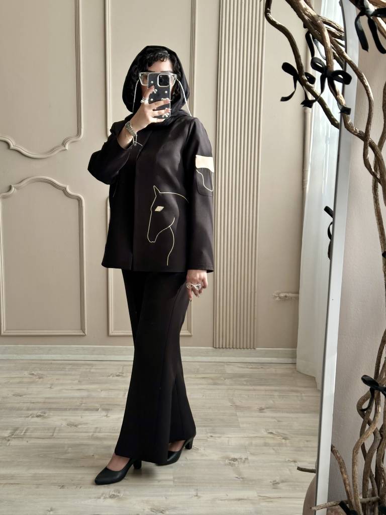 رنگ مشکی و قهوه ای با شلوار هم رنگ ست شده