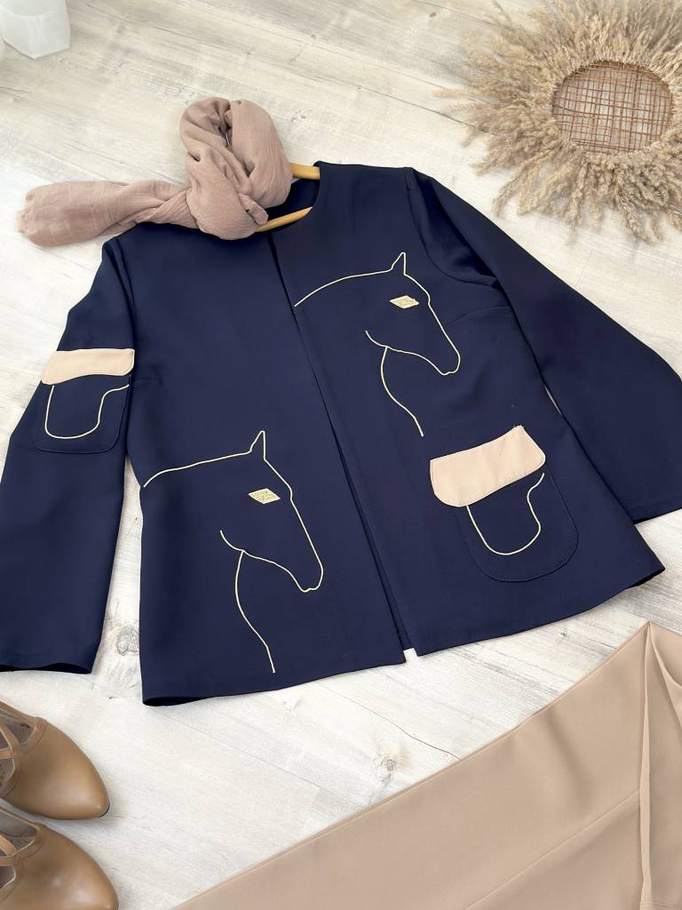 رنگ سرمه ای با شلوار کرم ست شده