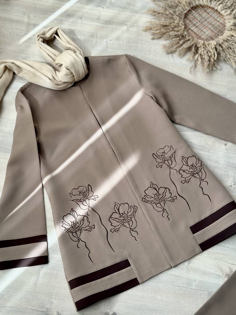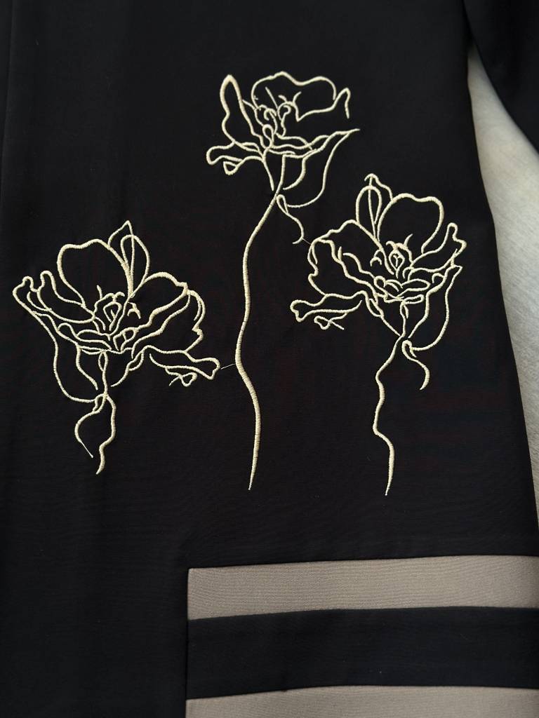 تیکه دوزی زیبا در قسمت پایین مانتو و لبه های آستین
