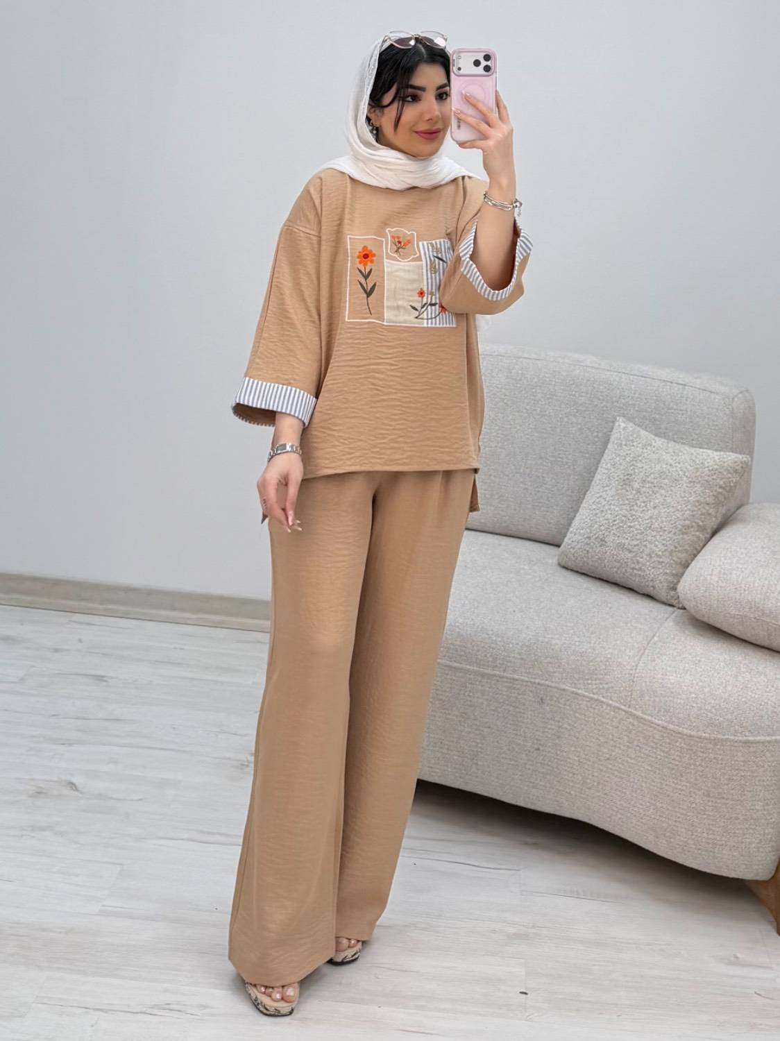 قدجلوشومیز حدودا ۶۵ قداستین از یقه ۵۲ دوربازو ۴۸ دورسینه ۱۲۰ قدشلوار ۱۰۵ دورران ۶۶ دمپا۵۲