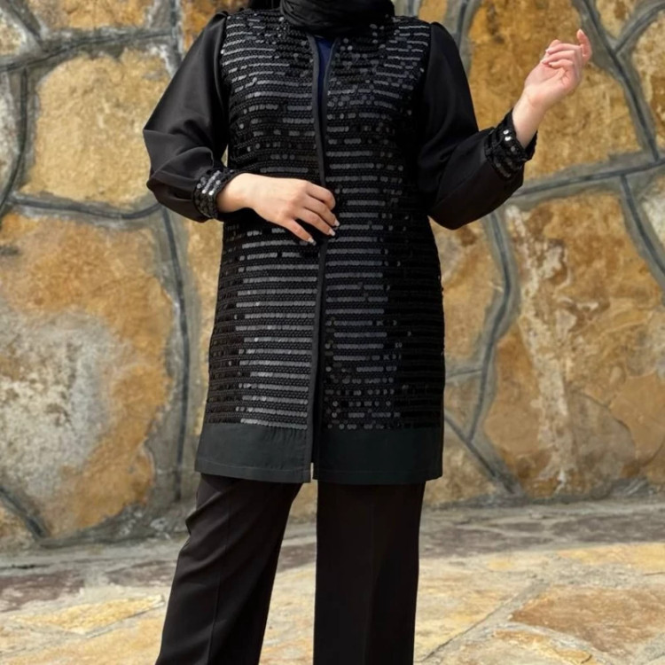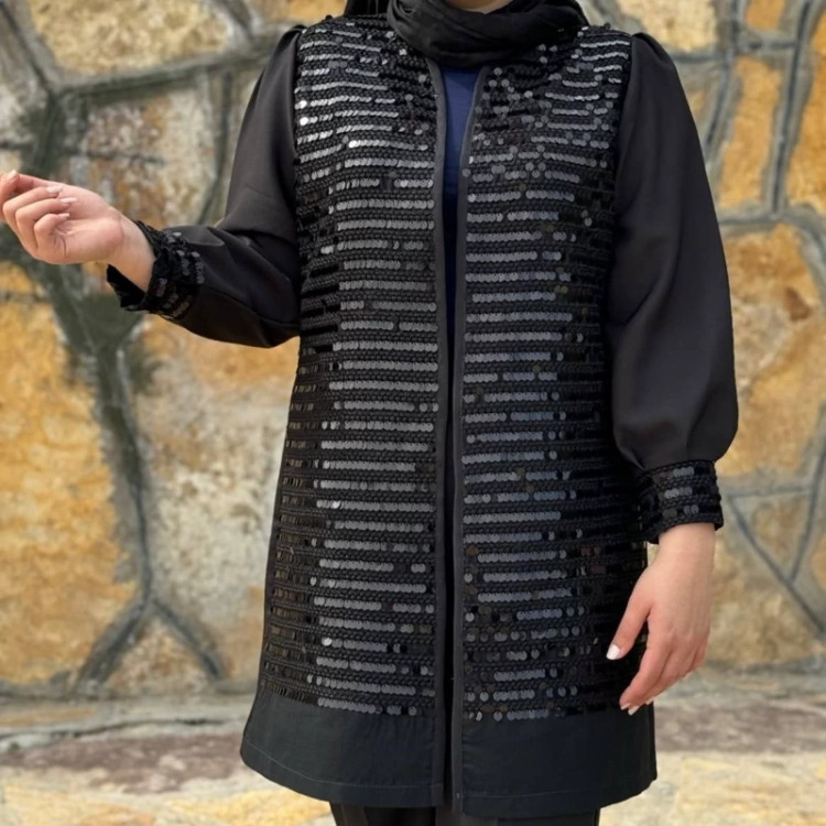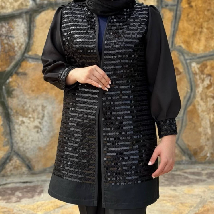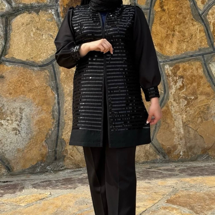 👒شناسه کاربری : #8302 👒نام : مانتو مزونی سوزن دوزی و پولک دوزی هدی🌹😍 👒جنس : لینن سوزن دوزی پولک دوزی بهاره هندی و پشت کار و استین از جنس کرپ باربی عالی لینن پرکار هندی سوزن دوزی بدون ریزش 👒رنگ بندی : مشکی 👒سایزها : فری38الی46 👒توضیحات : قد کار حدود 90 قد آستین حدود 55 الی 58 دورسینه حدود 107 الی 109 مشکی کار کاملا مشکی هست و بور نیس داخل کار تمام لایی حریر مجلسی کار شده و آستر کشی شده