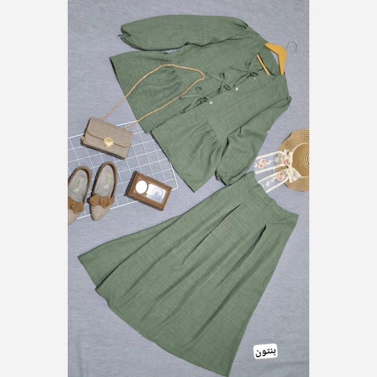 شناسه : #91560 👚نام : ست شومیز و دامن ژاله💫 🧶جنس : شانتون💫 🧵رنگ بندی : کرم نسکافه ای.زیتونی, سبز, سورمه ای, .بنتون .کرمی, مشکی💫 👭سایز ها : فری سایز تا46💫💫 قد شومیز 70 قد آستین 60 دارای دکمه مخفی دور سینه 110 قد دامن 90 🔹ارسال فوری