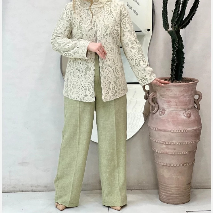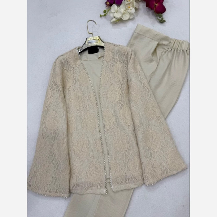 مانتو وشلوار گیپور شانتون سایز 38 تا 48