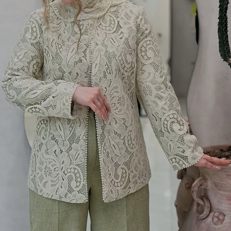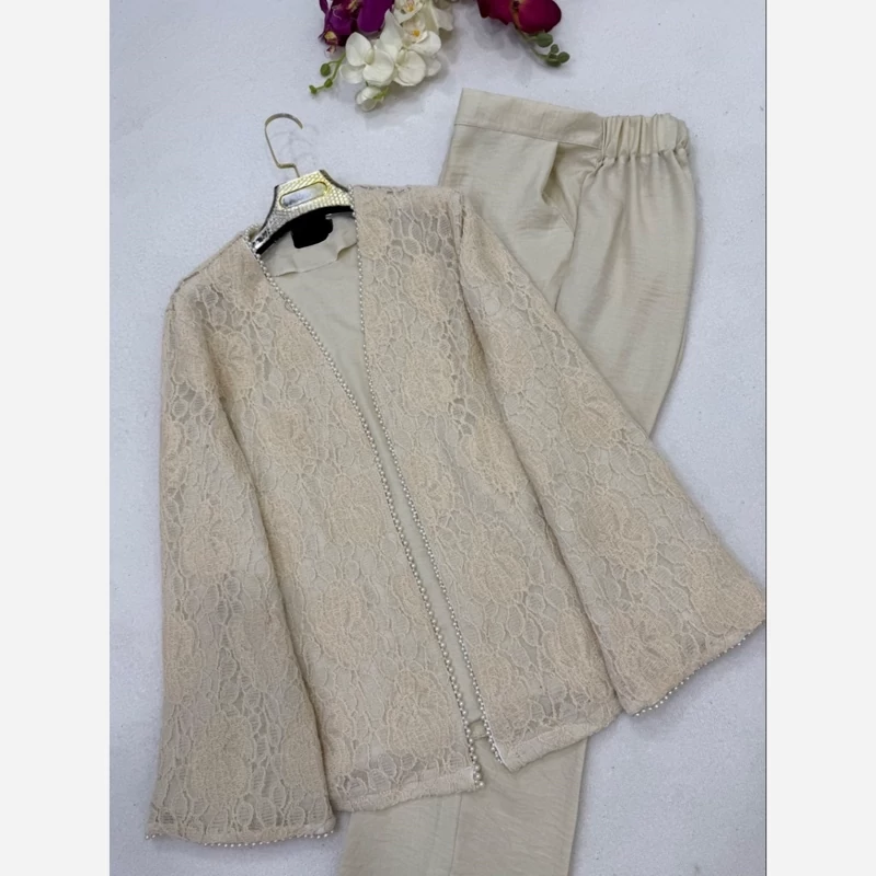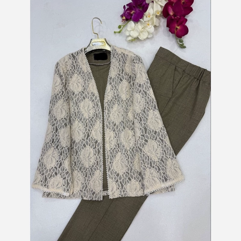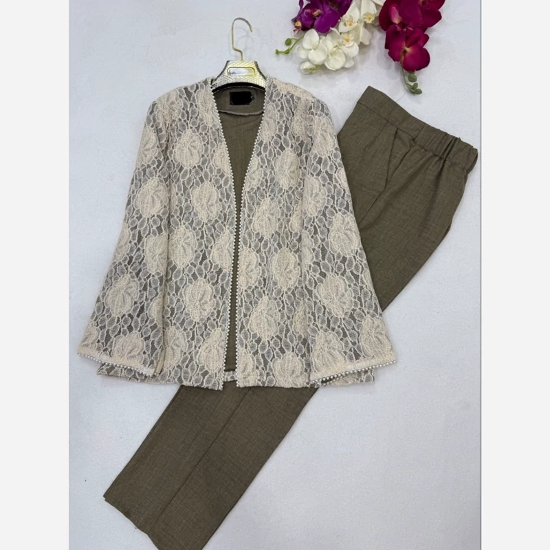 مانتو وشلوار گیپور شانتون سایز 38 تا 48