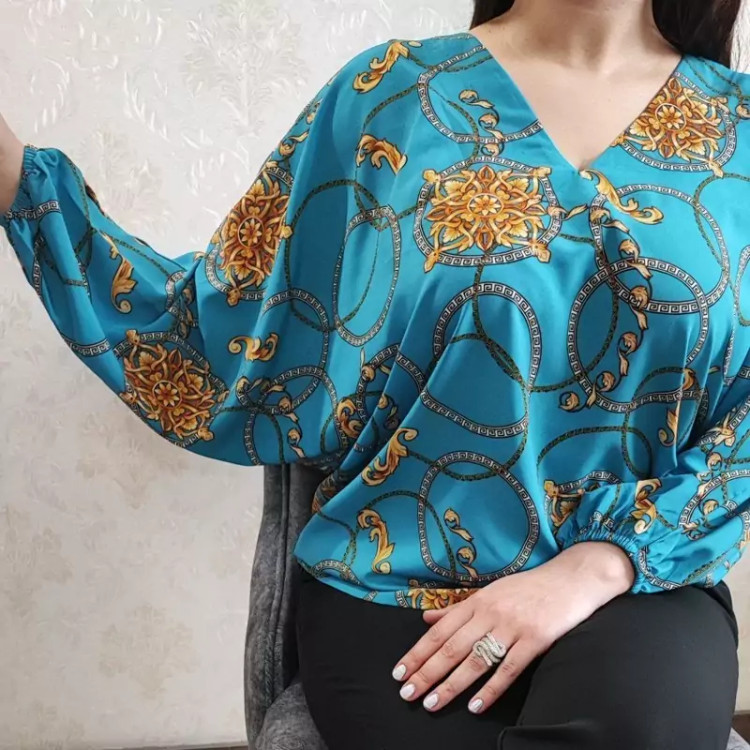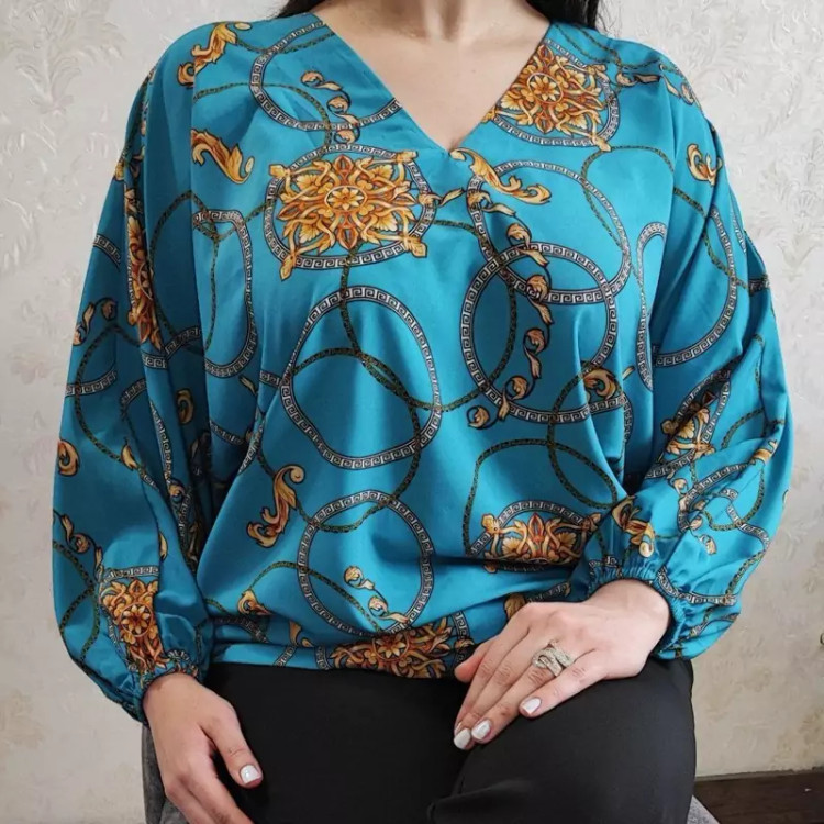 شومیز مزونی اسمان جنس کرپ سایز 38تا48 فری سایز