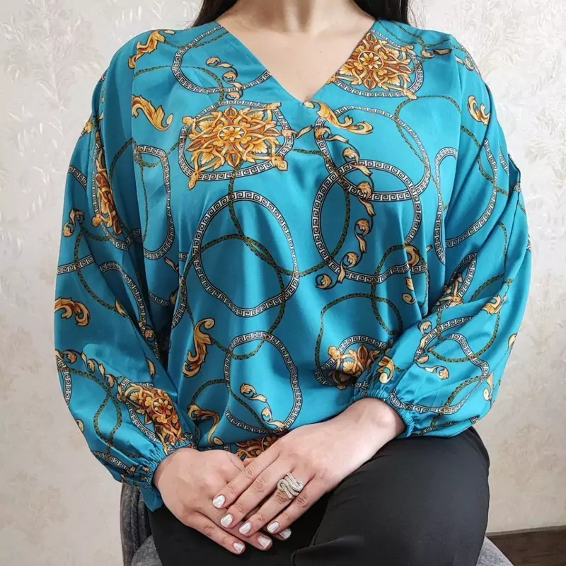 شومیز مزونی اسمان جنس کرپ سایز 38تا48 فری سایز