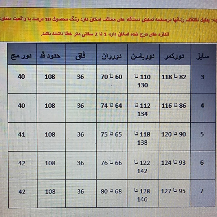 با خیال راحت طبق جدول سایز خرید کنید 🌱