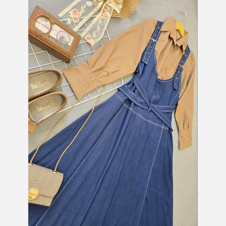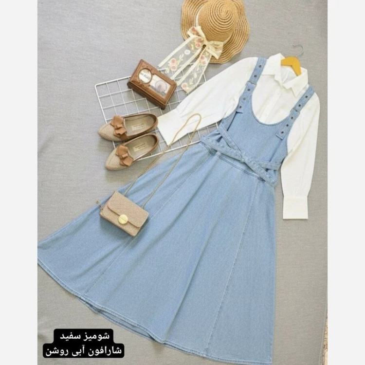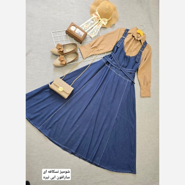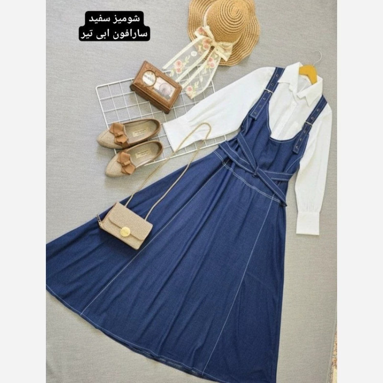 🧶رنگ بندی : شومیز سفید سارافون آبی تیره, شومیز سفید سارافون آبی روشن, شومیز نسکافه ای سارافون آبی تیره, شومیز نسکافه ای سارافون آبی روشن💖
