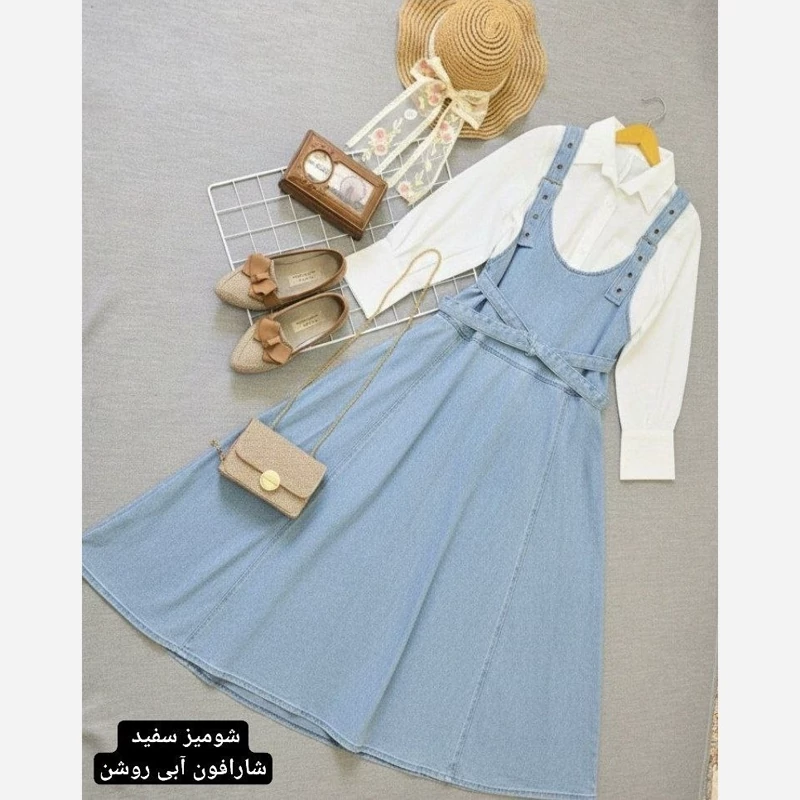 🧶رنگ بندی : شومیز سفید سارافون آبی تیره, شومیز سفید سارافون آبی روشن, شومیز نسکافه ای سارافون آبی تیره, شومیز نسکافه ای سارافون آبی روشن💖