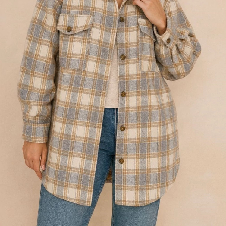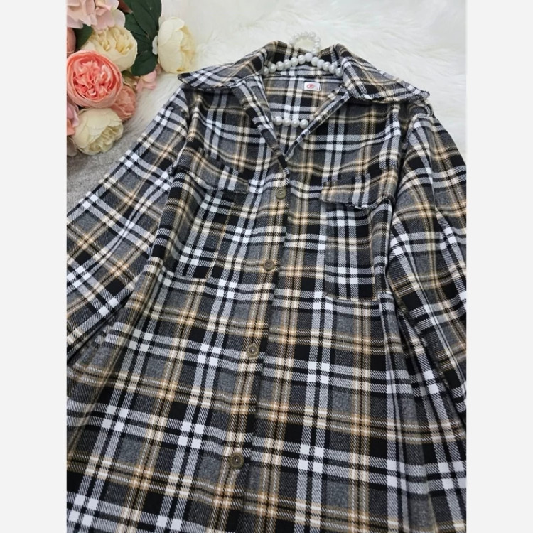 مانتو پشمی چهارخونه سایز 38 تا 48