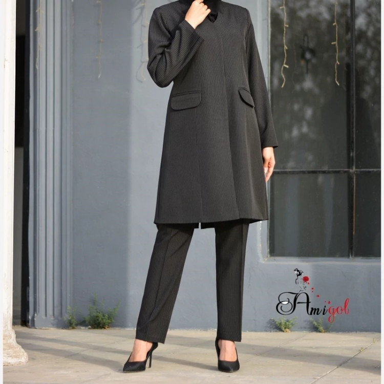 مانتو وشلوار اداری آستردار مزوندوز سایز 38 تا 48
