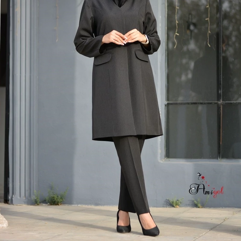 مانتو وشلوار اداری آستردار مزوندوز سایز 38 تا 48