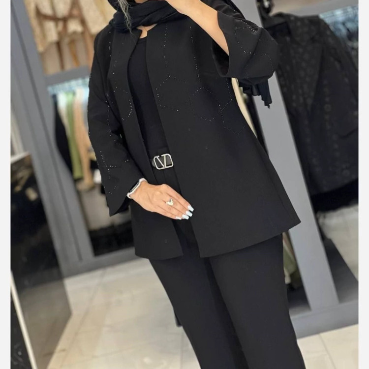🧵جنس : کرپ مرویجت جت بلک نگین کاری شده