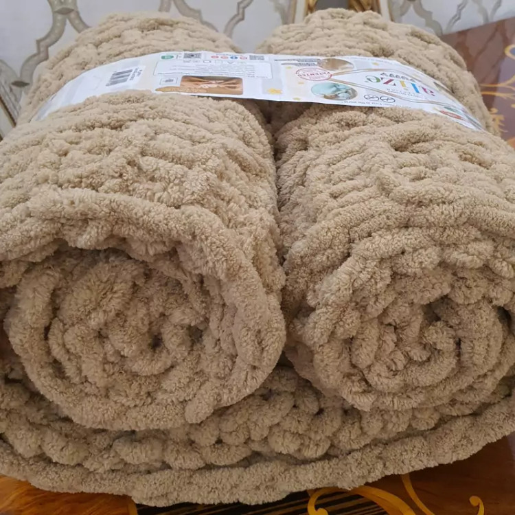شالمبل مخمل آلیزه پافی دستبافت وارداتی طرح بافت خوشه گندم ترک رنگ نود