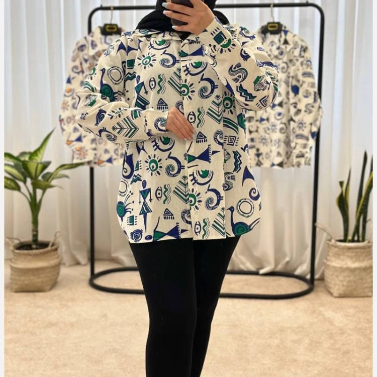 شومیز لینن طرح باستانی سایز 36 تا 48