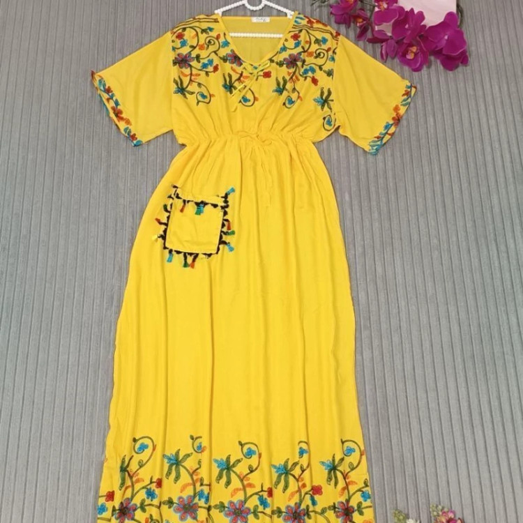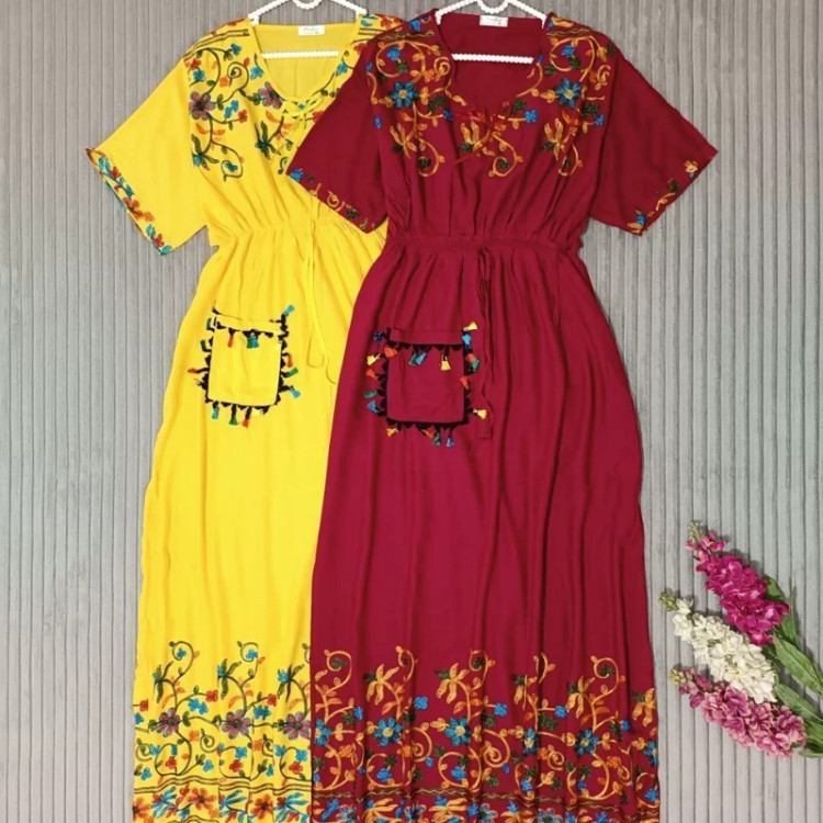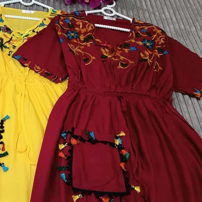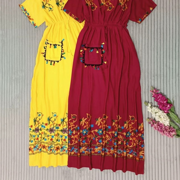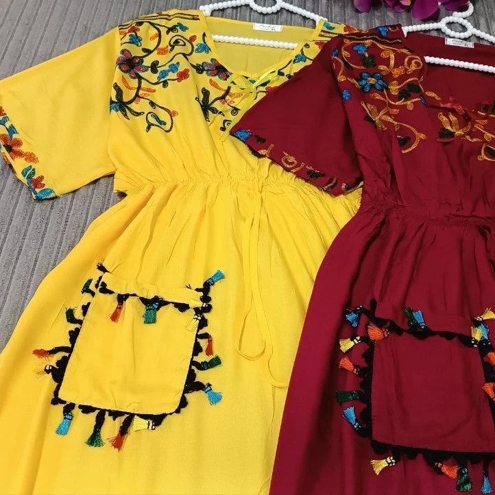 پیراهن ساحلی وارداتی فول گلدوزی نخ اعلا سایز 38تا54