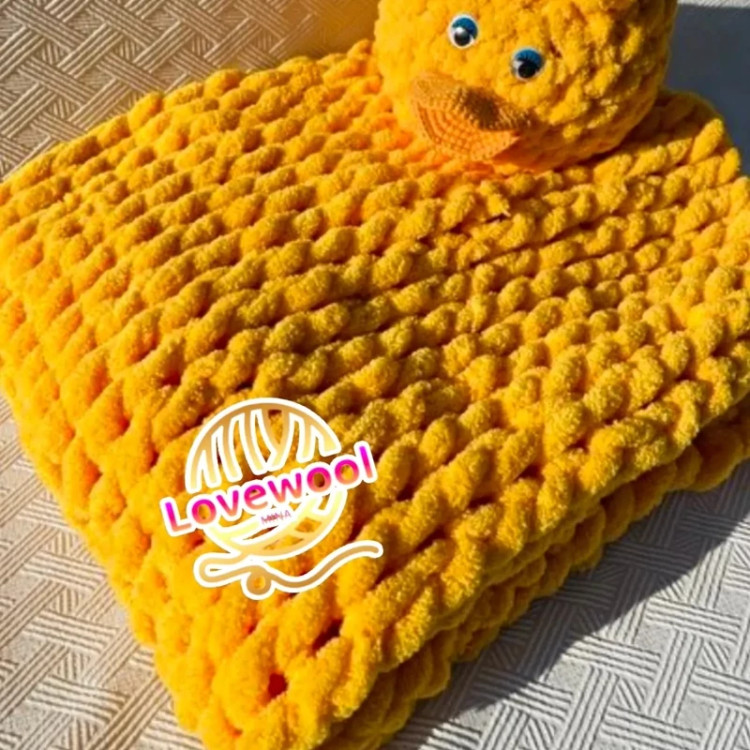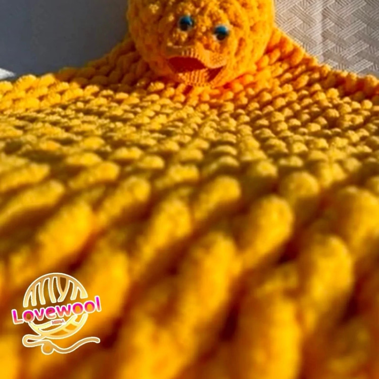 پتو نوزادی طرح بافت پیچ پیچی ترک دستبافت آلیز پافی رنگ زرد قناری