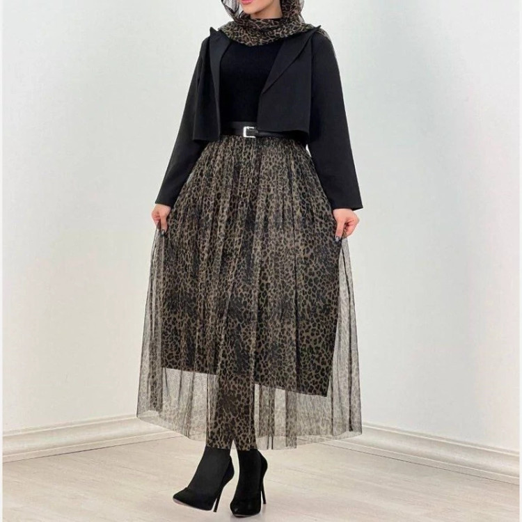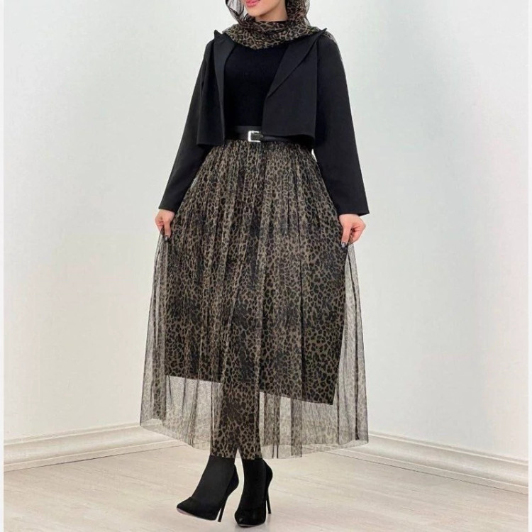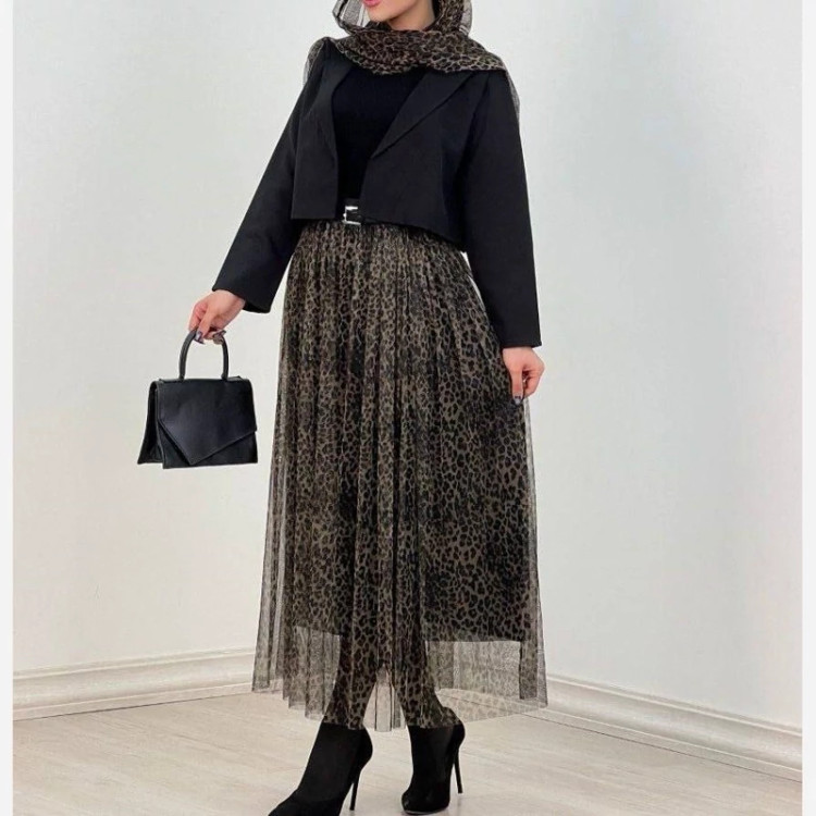 خفن ترین مدل از کالکشــن عیدانمون 😍👌🌸 خاص پرطرفدار و تنخور فوقالعاده قشنگ🥰 🌿مدل:سه تیکه #پلنگی 🌿کراپ کت و دامن و شال🥰 🌿جنس:کرپ وتور👌 🌿رنگبندی:طوسی،قهوه ایی 🌿فری سایزتا46 🌿اندازه ها حدودا👇 🌿قدکت 43 🌿قد دامن95 🌿قدآستین 56 🌿ارسال 10روزکاری✈️